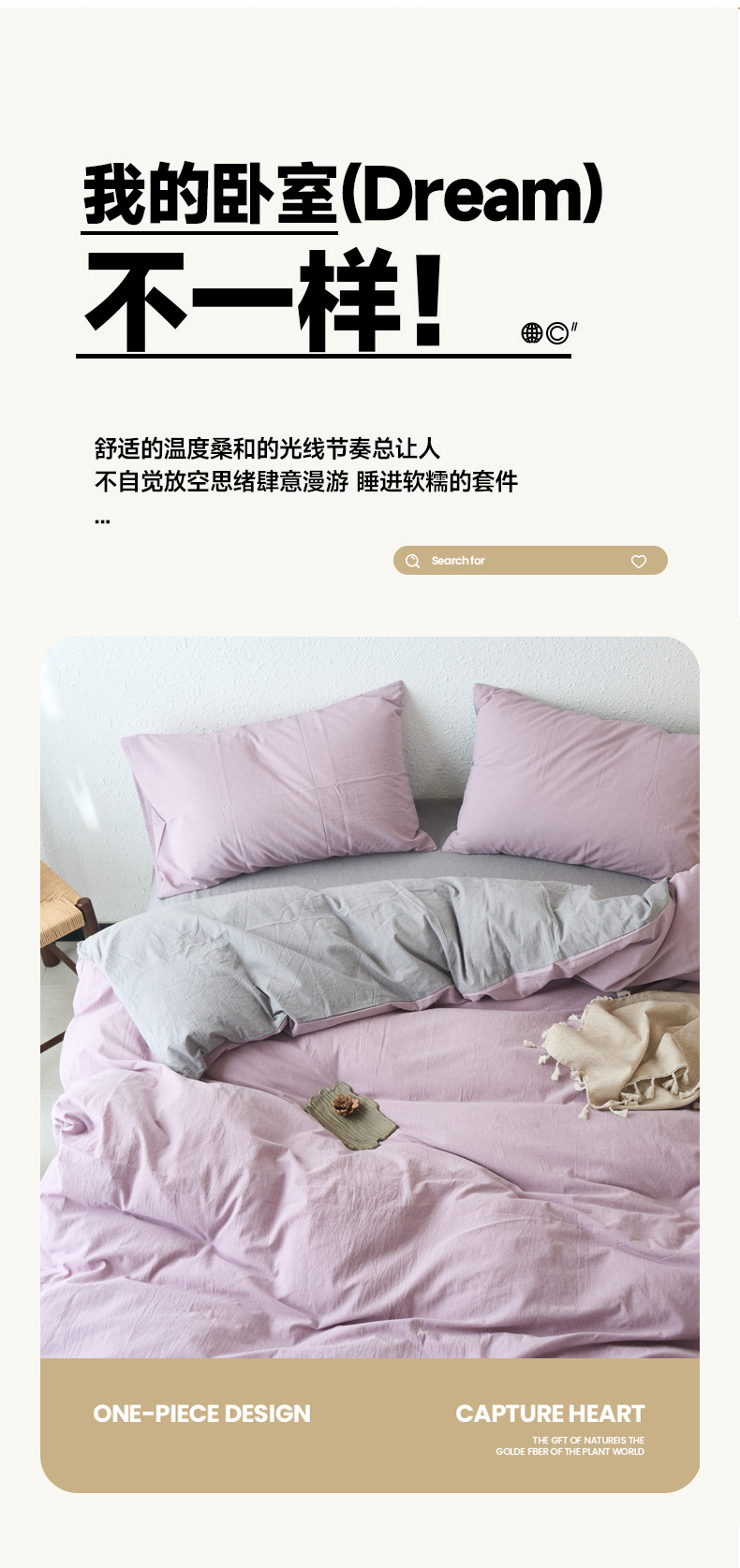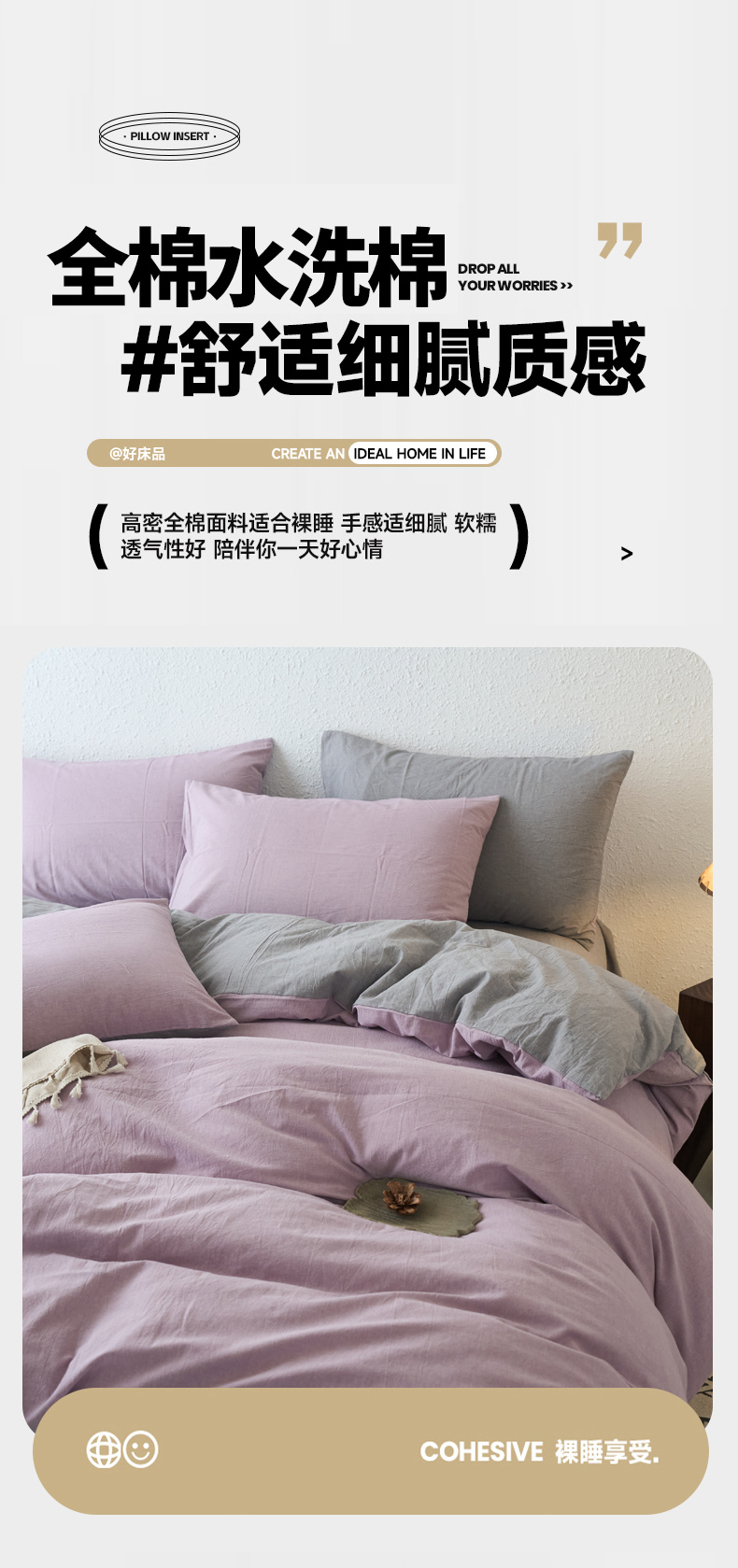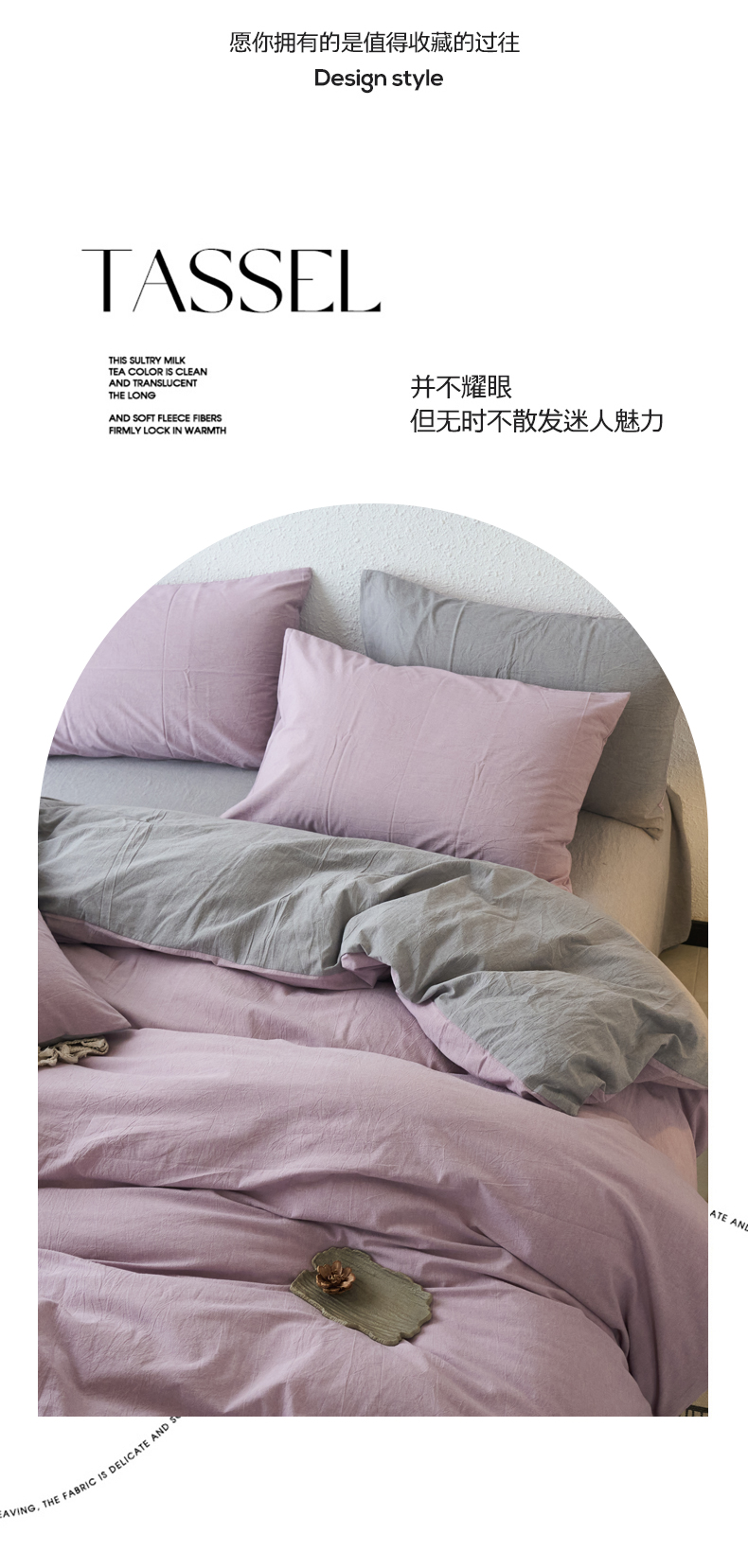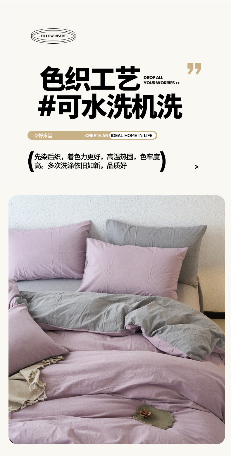 当前位置: 91家纺网 > 商品网购 > 床品套件 > 四件套 > 全棉普通四件套 > 兰紫橙家纺 2026新款A类色织纯色全棉水洗棉四件套 全棉水洗棉-紫红+浅灰