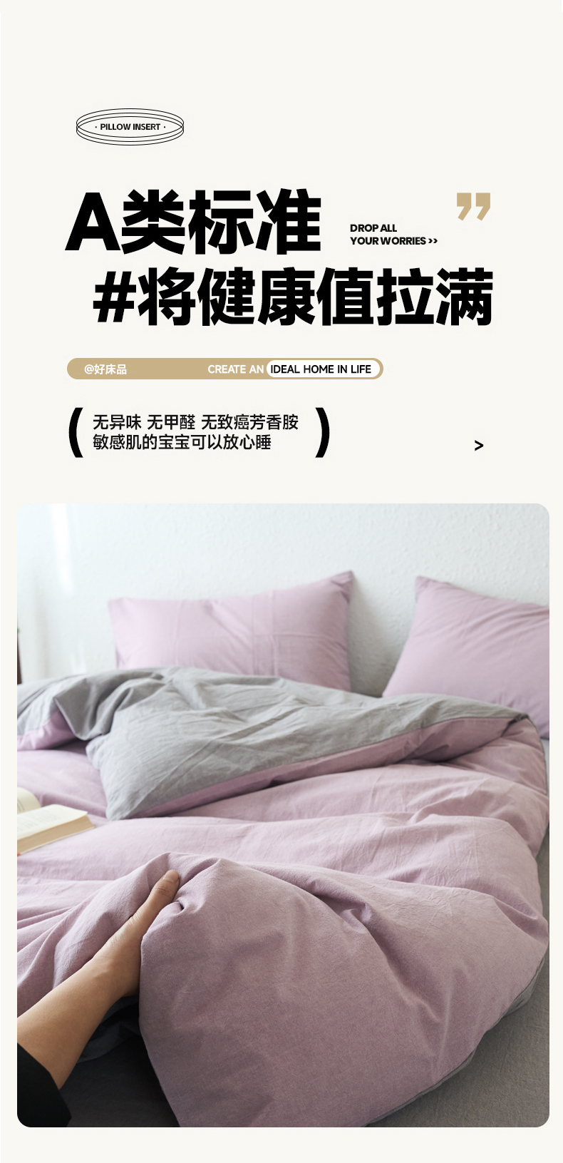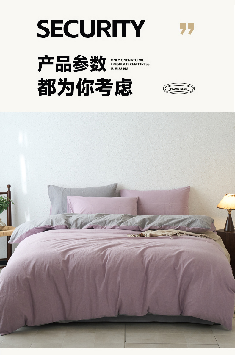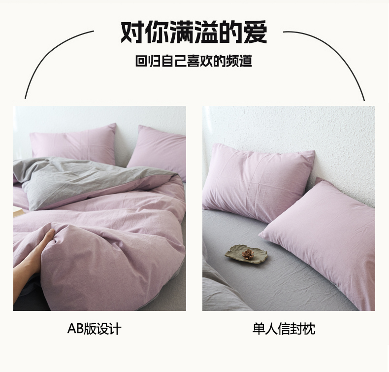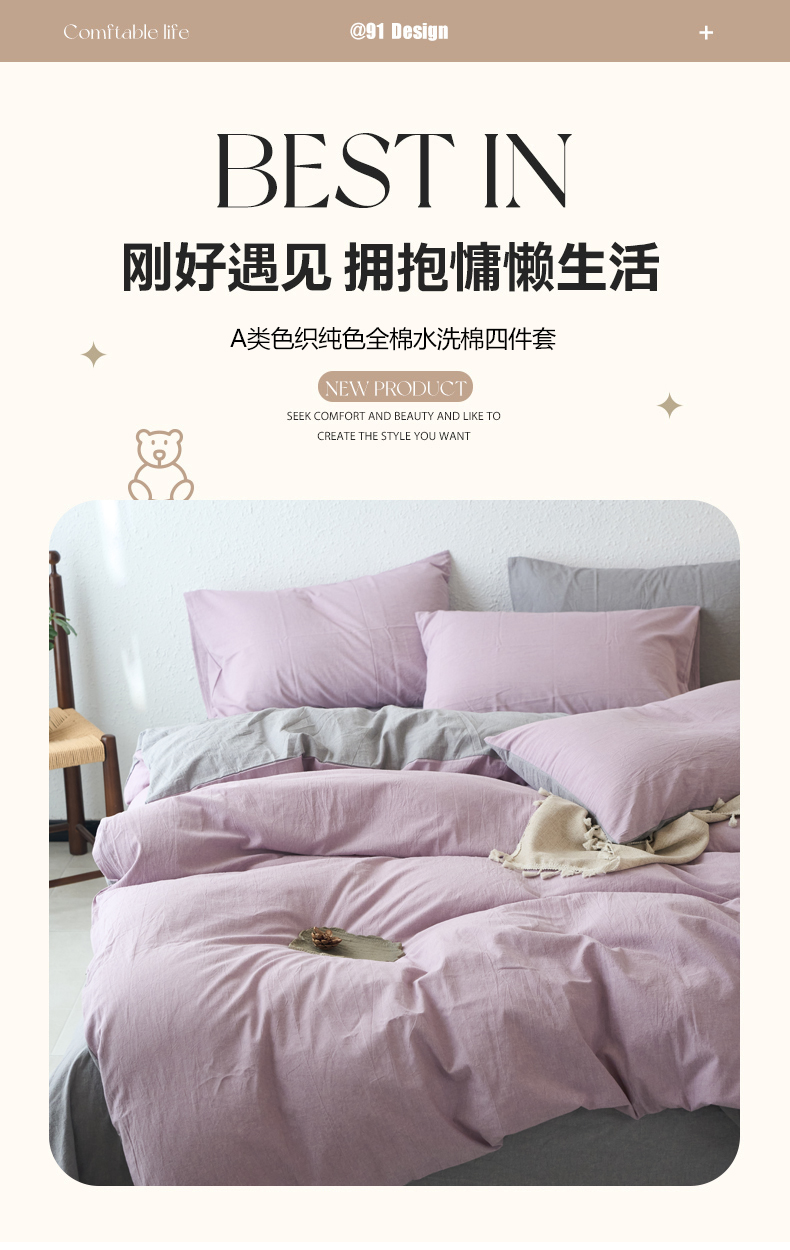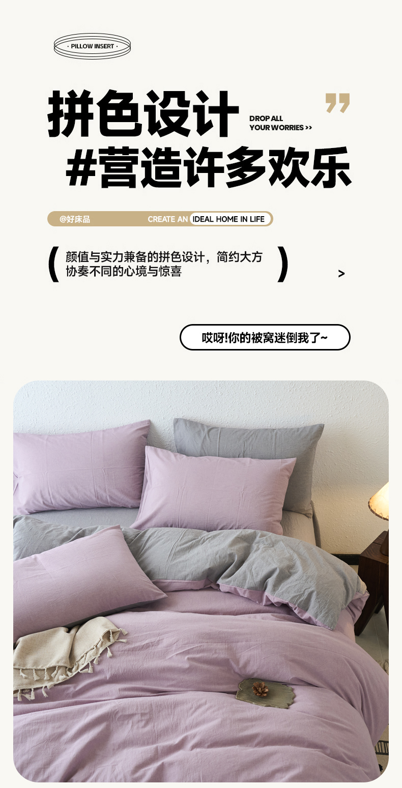 当前位置: 91家纺网 > 商品网购 > 床品套件 > 四件套 > 全棉普通四件套 > 兰紫橙家纺 2026新款A类色织纯色全棉水洗棉四件套 全棉水洗棉-紫红+浅灰