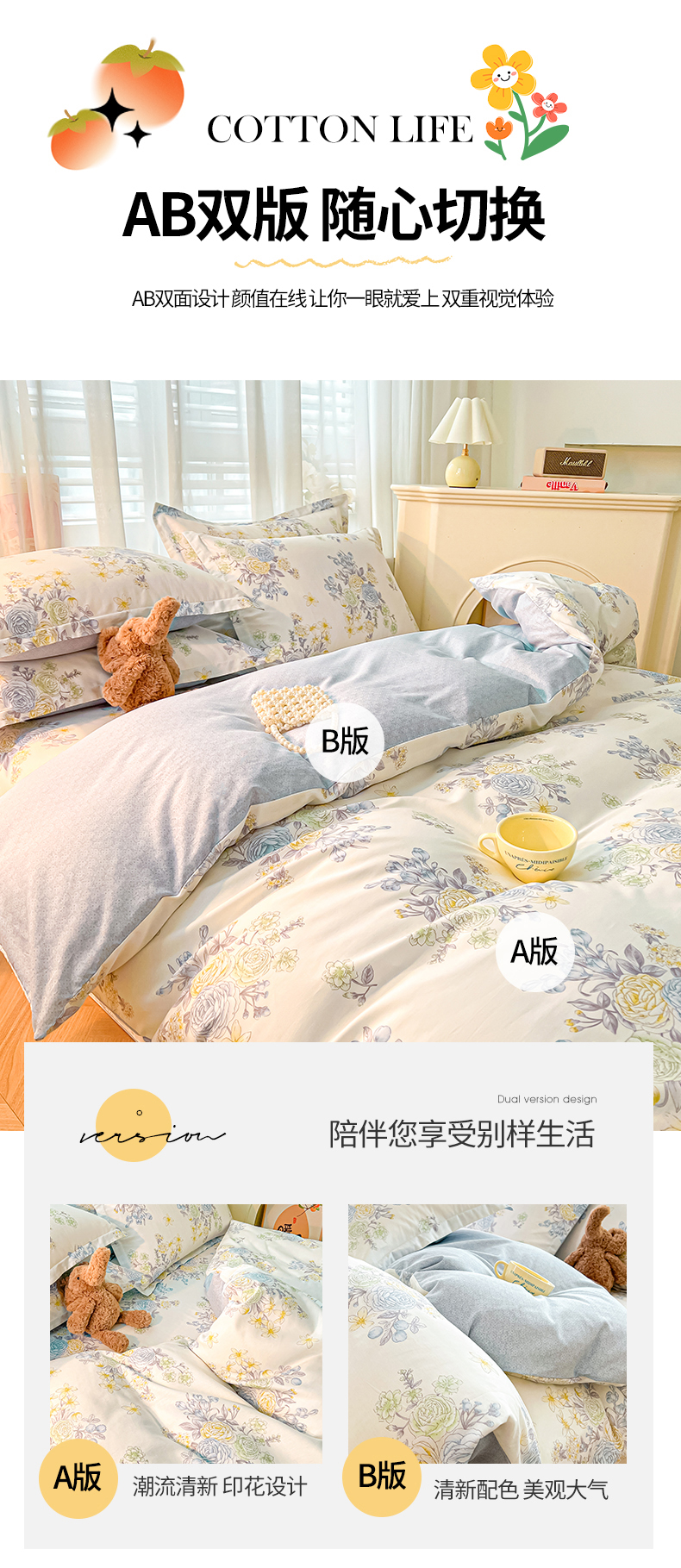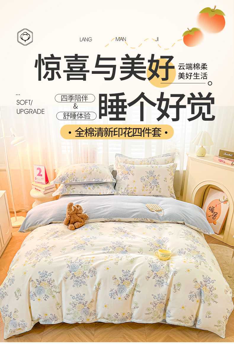 (总)珂博家纺 2026新款小碎花纯棉12868四件套全棉学生三件套场景二,好柿发生,潮流前线,晨曦花露,格调都市,花枝印象,浪漫满屋,曼塔罗,梦里繁花,青春律动,星辰大海