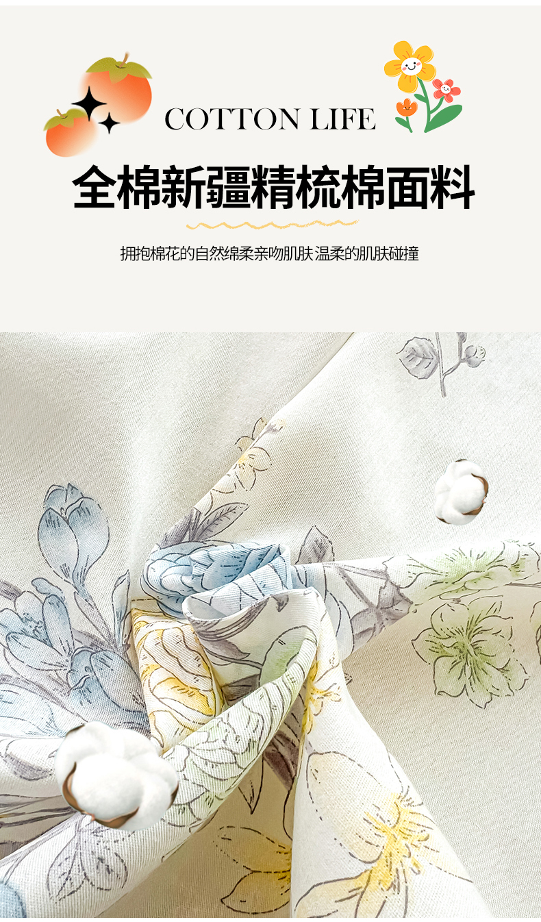 商品名称:珂博家纺 2026新款12868全棉纯棉小清新印花系列单品被套 晨曦花露