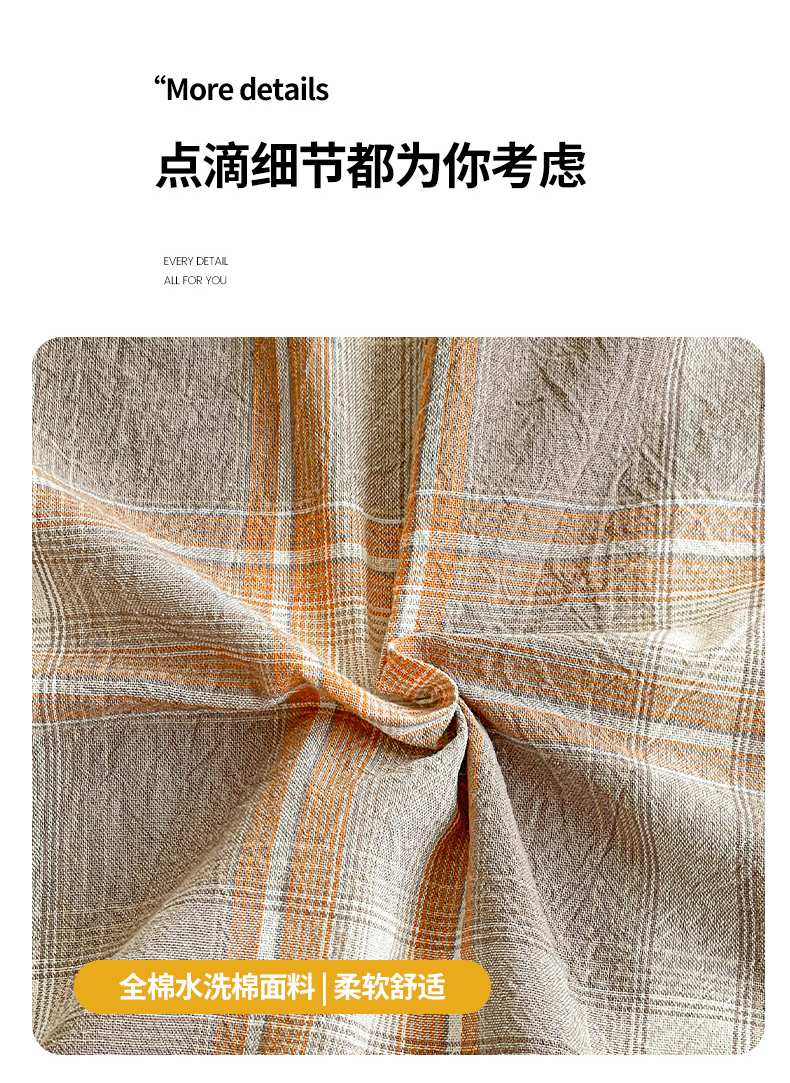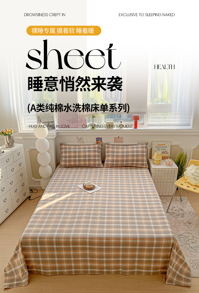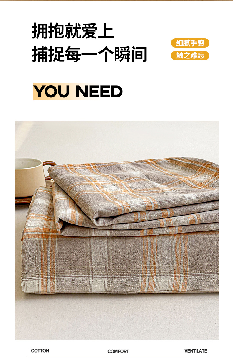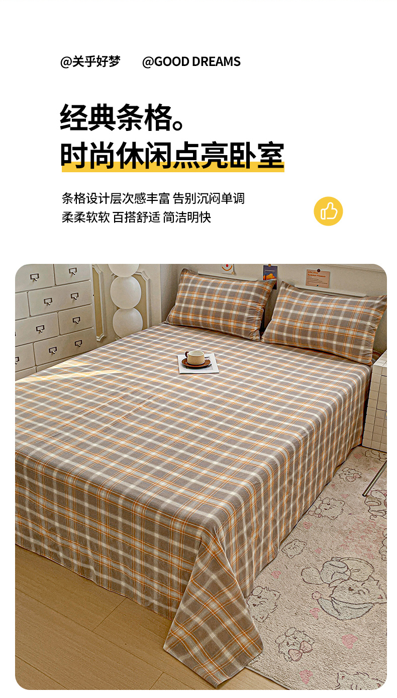 商品名称:(总)柠萌家居 2026新款全棉A类色织水洗棉母婴级简约格子三件套床单