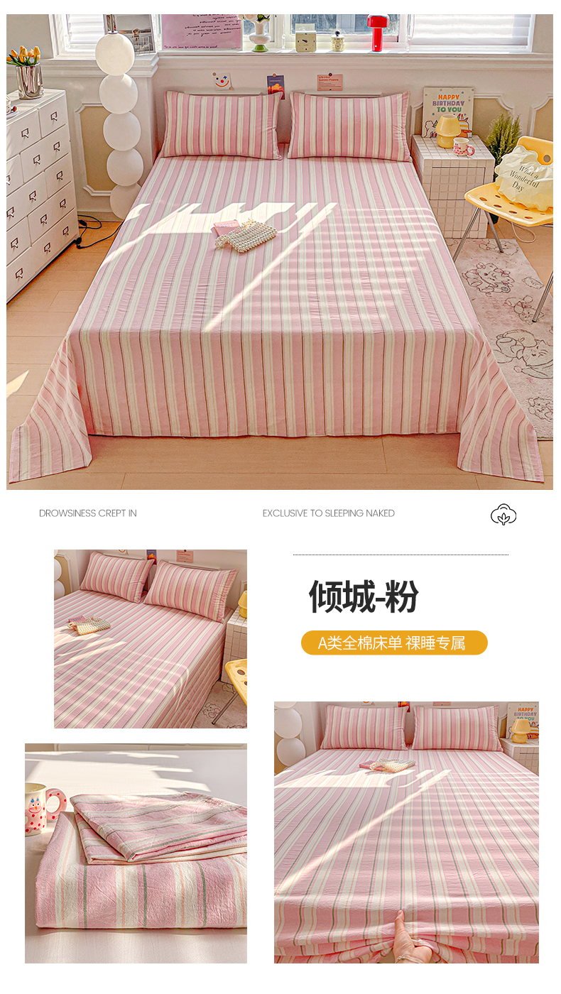 (总)柠萌家居 2026新款色织水洗棉四件套单被套,粉极细条,粉紫条,黄咖条,灰极细条,蓝咖条,绿极细条,绿紫条,米极细条,驼红条