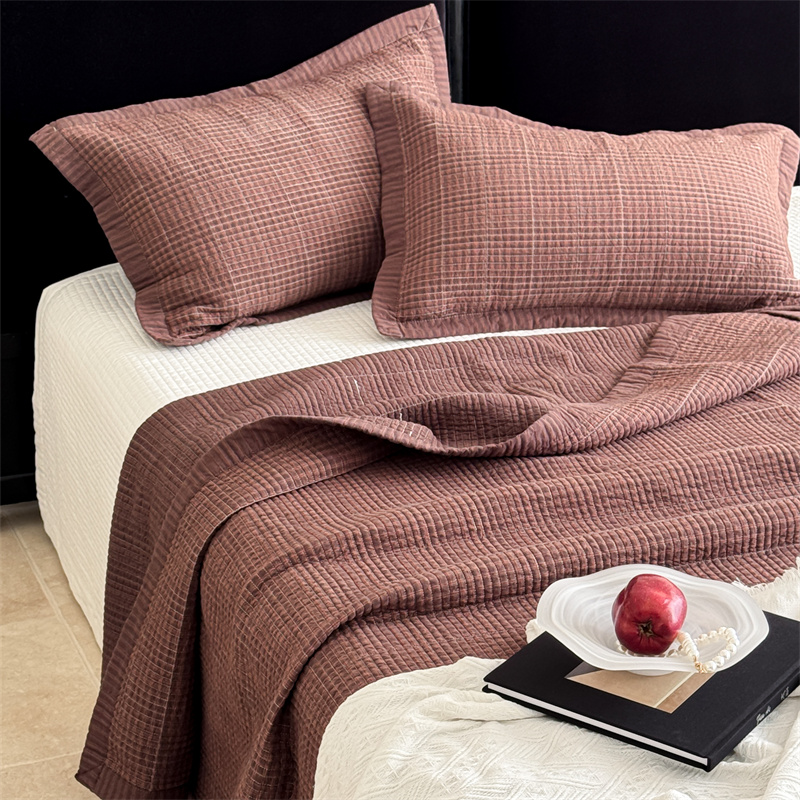 (总)床盖工厂店 2026新款双面全棉水洗棉花糖床盖三件套-米通格系列,米通格-灰色,米通格-咖色,米通格-浅绿,米通格-浅紫,米通格-玉色