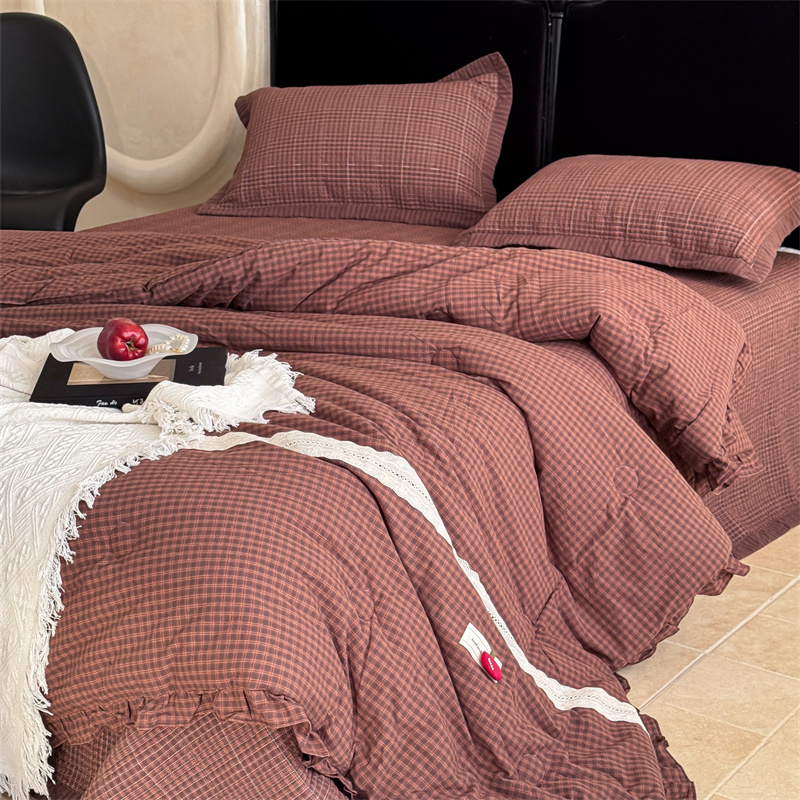 床盖工厂店 2026新款双面水洗全棉填充新疆棉花床盖四件套 赫本咖