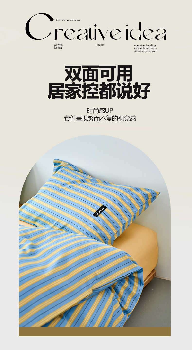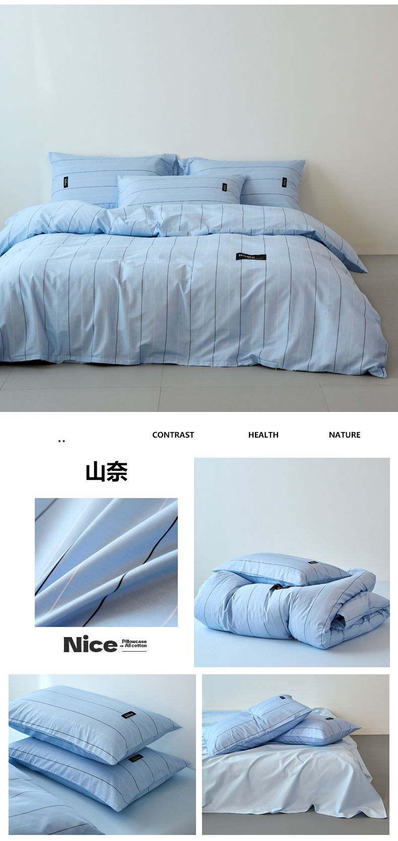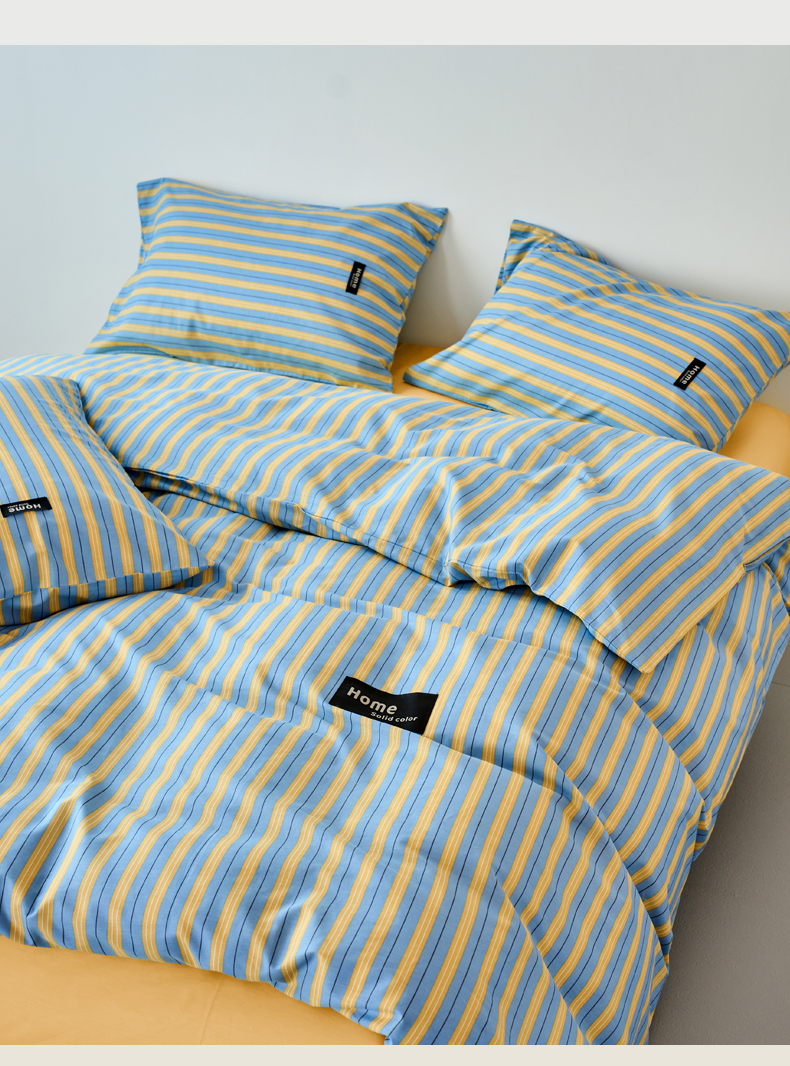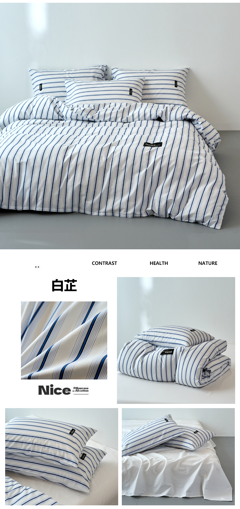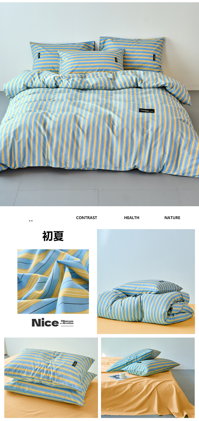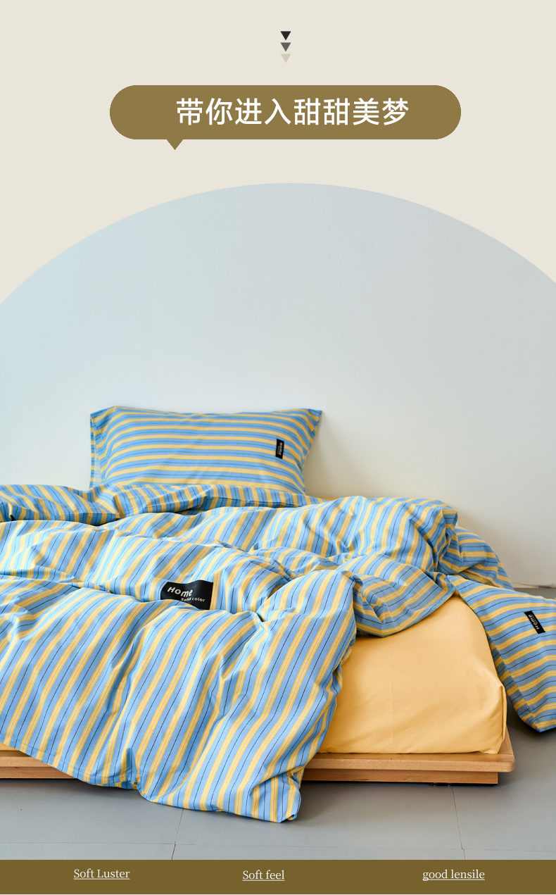 当前位置: 91家纺网 > 商品网购 > 床品套件 > 四件套 > 全棉普通四件套 > 兰紫橙家纺 2026新款简约风全棉条纹四件套 初夏