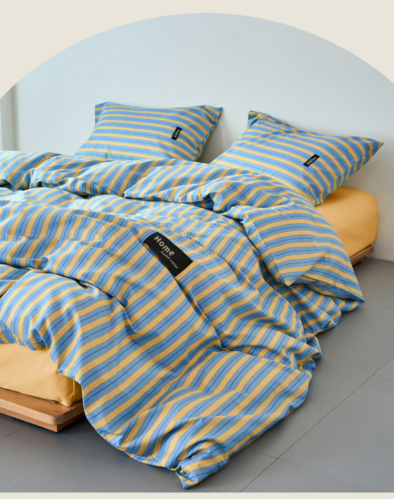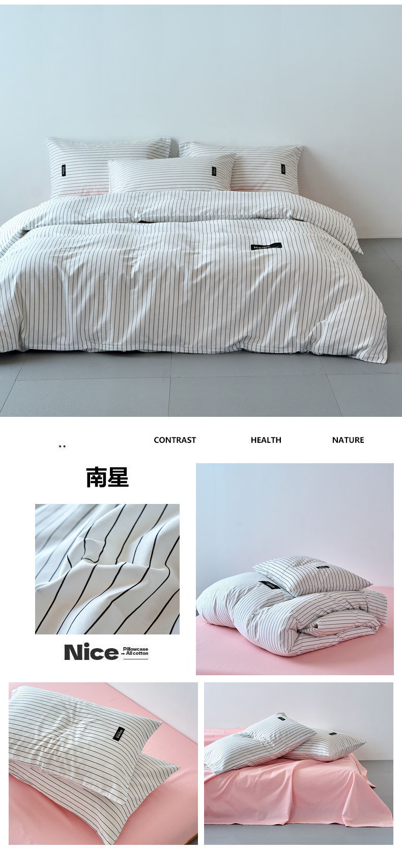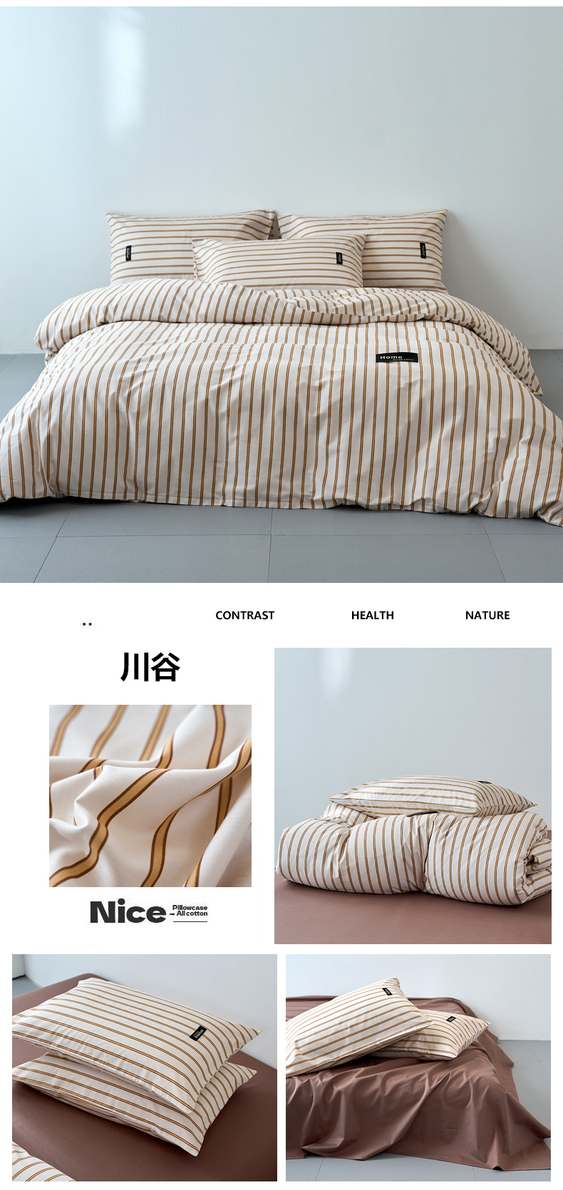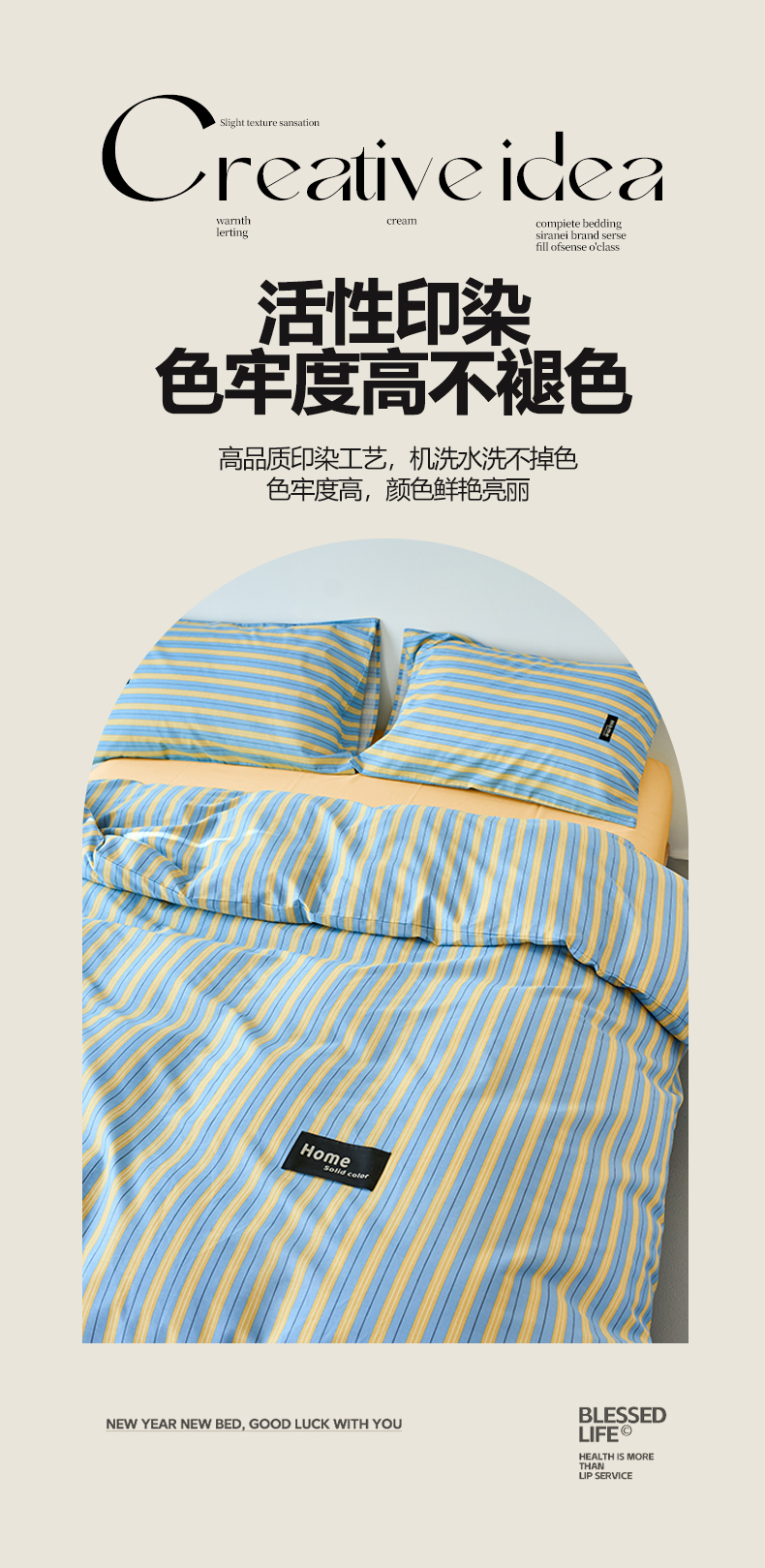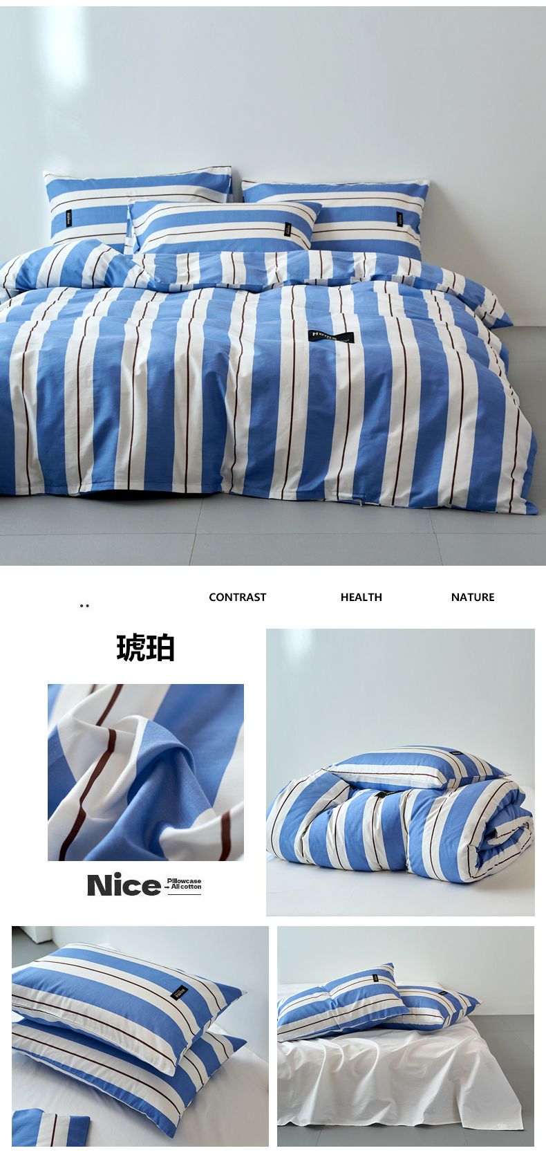 当前位置: 91家纺网 > 商品网购 > 床品套件 > 四件套 > 全棉普通四件套 > 兰紫橙家纺 2026新款简约风全棉条纹四件套 初夏