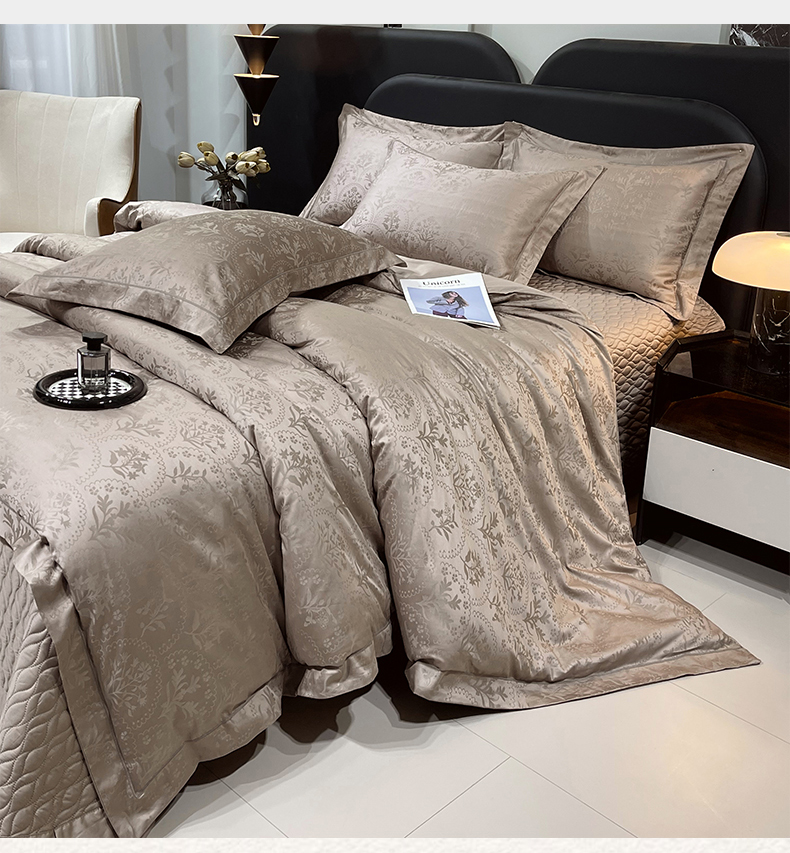 商品名称:小时代家纺 2026新款100支长绒棉全棉纯棉高定提花夹棉床盖四件套 锦枝-咖