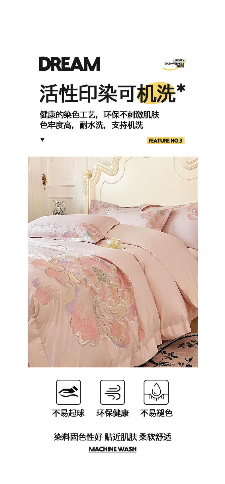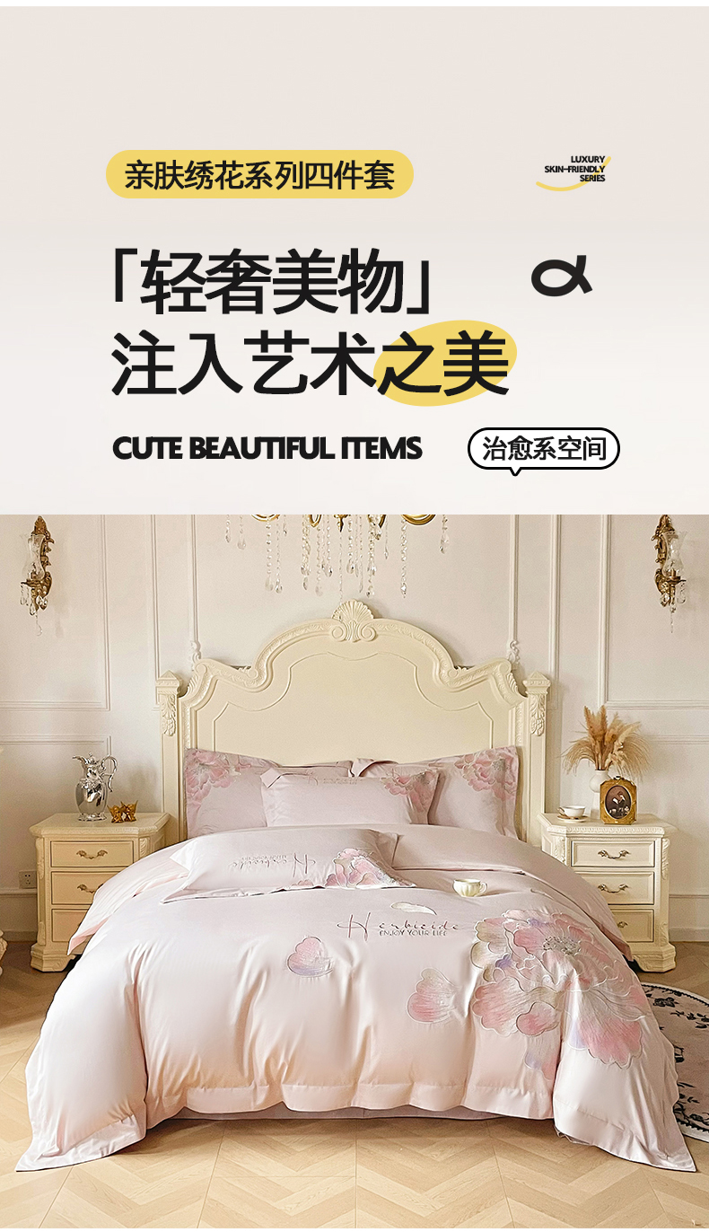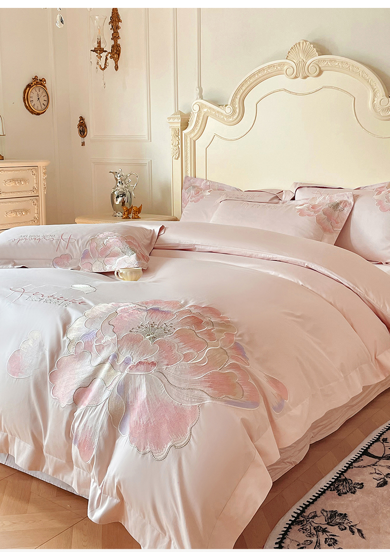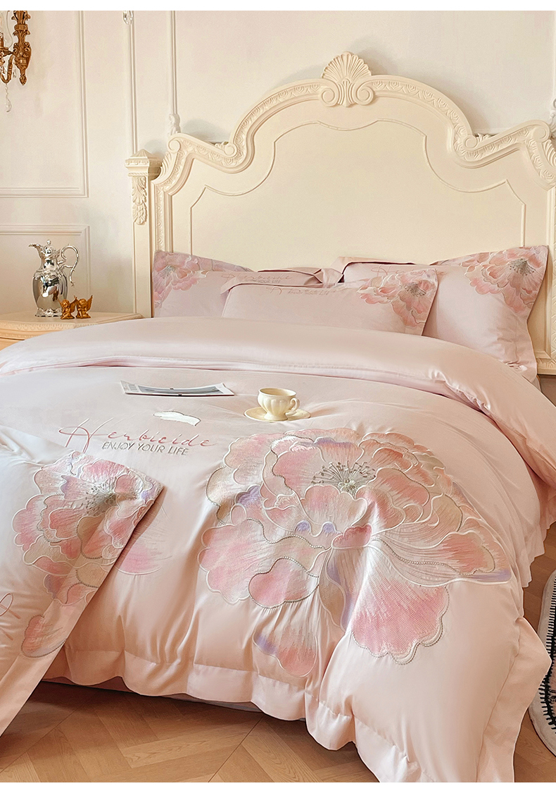 当前位置: 91家纺网 > 商品网购 > 床品套件 > 四件套 > 普通磨毛四件套 > 置顶家纺 2026春夏新款130克磨毛花间集刺绣小清新四件套-风格二 花间集-粉