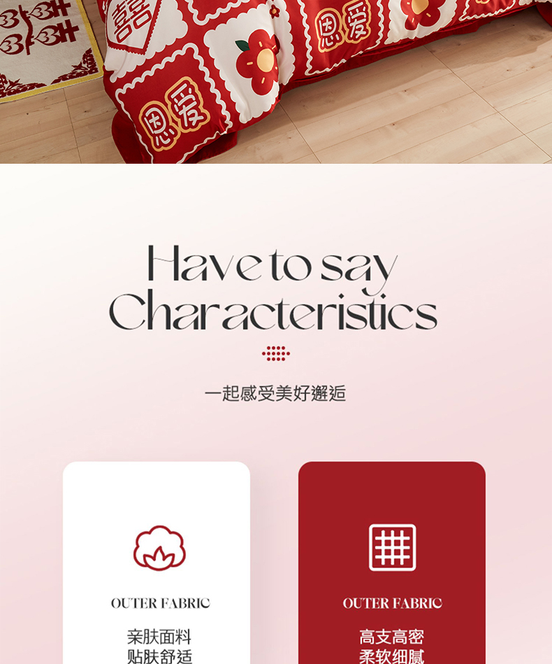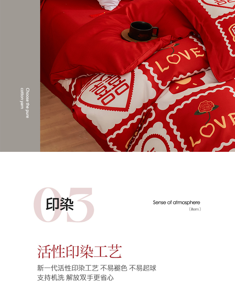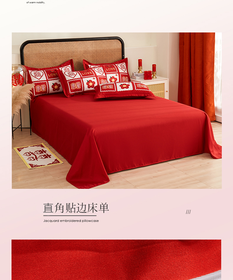 当前位置: 91家纺网 > 商品网购 > 床品套件 > 四件套 > 婚庆四件套 > 啊雅家居 2026新款大红婚庆数码印花四件套床单款床笠款 永结同心