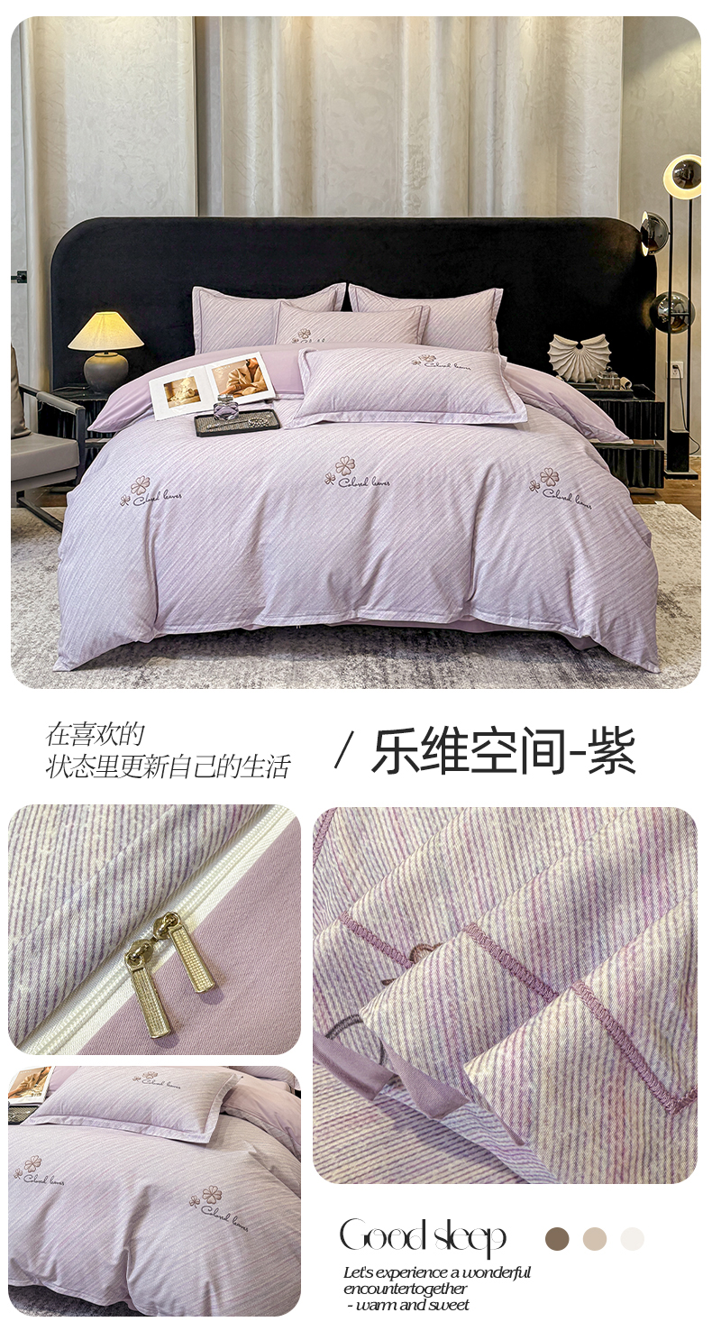 喜四方 2024新款全棉磨毛全棉印花四件套曼迪-紫,曼迪-紫