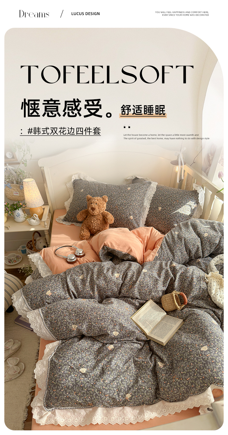 当前位置: 91家纺网 > 商品网购 > 床品套件 > 四件套 > 其它四件套 > 海岛哥哥 2026新款仿棉云柔纱韩版双花边四件套 花边-萌兔花园