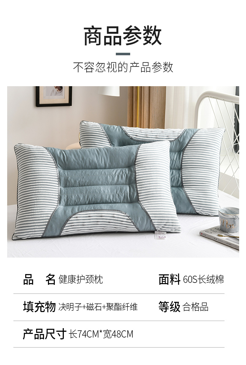 当前位置: 91家纺网 > 商品网购 > 枕头/枕芯/保健枕/颈椎枕 > 枕头枕芯 > 仁宇枕业 2026新款新品长绒棉决明子磁石枕头枕芯 长绒棉决明子透气-蓝色
