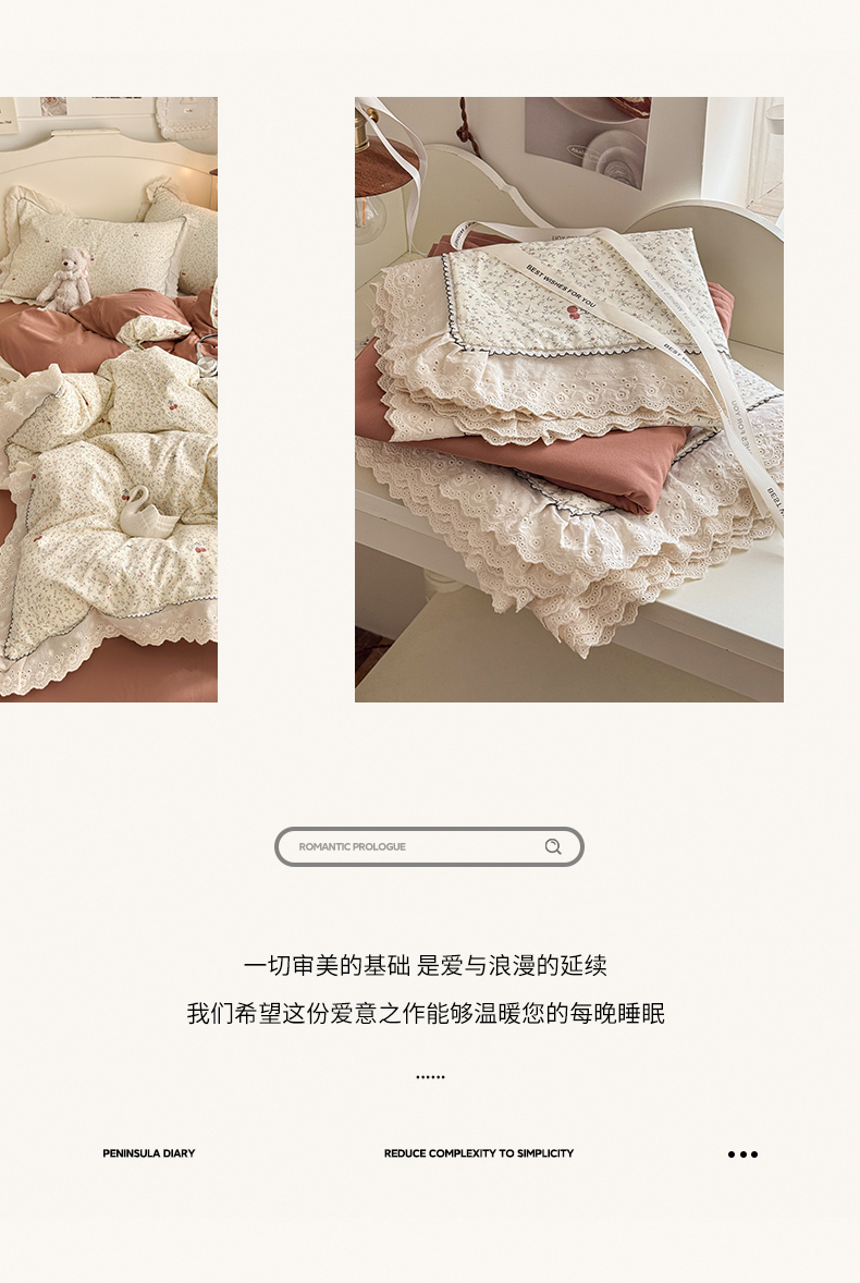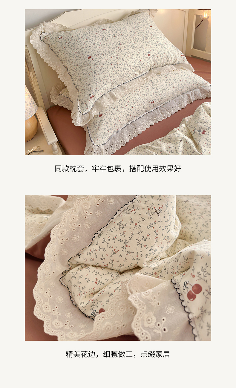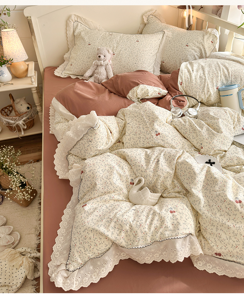 当前位置: 91家纺网 > 商品网购 > 床品套件 > 四件套 > 其它四件套 > 港岛妹妹 2026新款仿棉云柔纱韩版双花边四件套 花边-樱桃枝枝