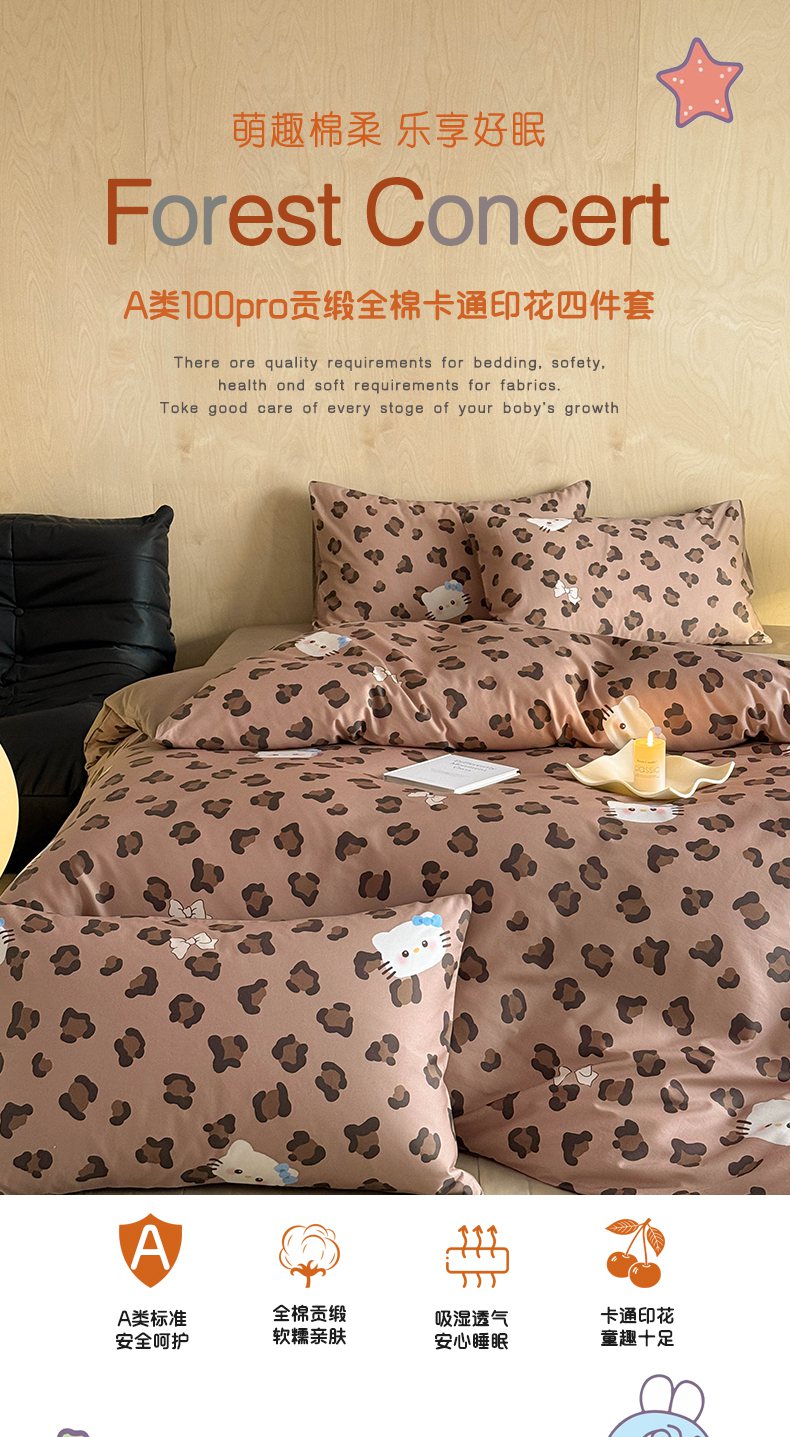 (总)卧趣家纺 2026新款纯棉四件套高级100Pro全棉贡缎卡通四件套,奥利奥-咖,奥利奥-兰,茶野,菲格拉,花仙兔,米拉,绵绵汪,慕朵,奇诺,恬悠,甜心