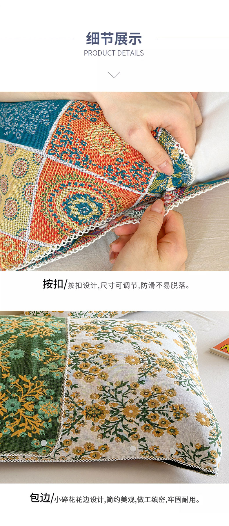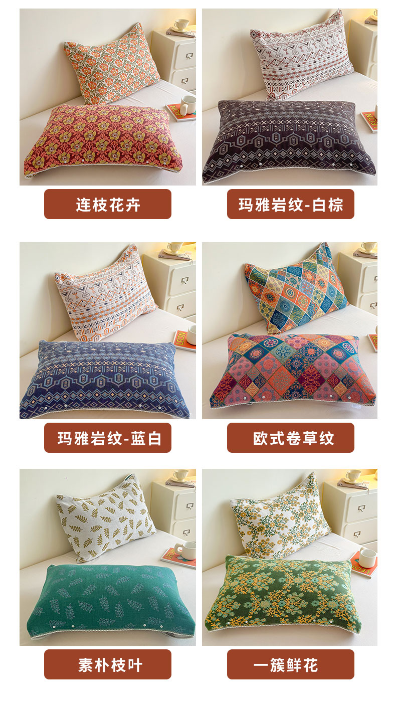 • 91家纺网 家纺一手货源 找家纺 朴尔家纺-毛巾被 2026新款半包可调节暗扣魔术全棉纯棉三层纱布枕巾 玛雅岩纹-白棕 53x110cm枕巾一对