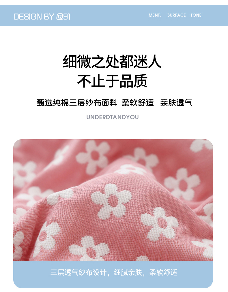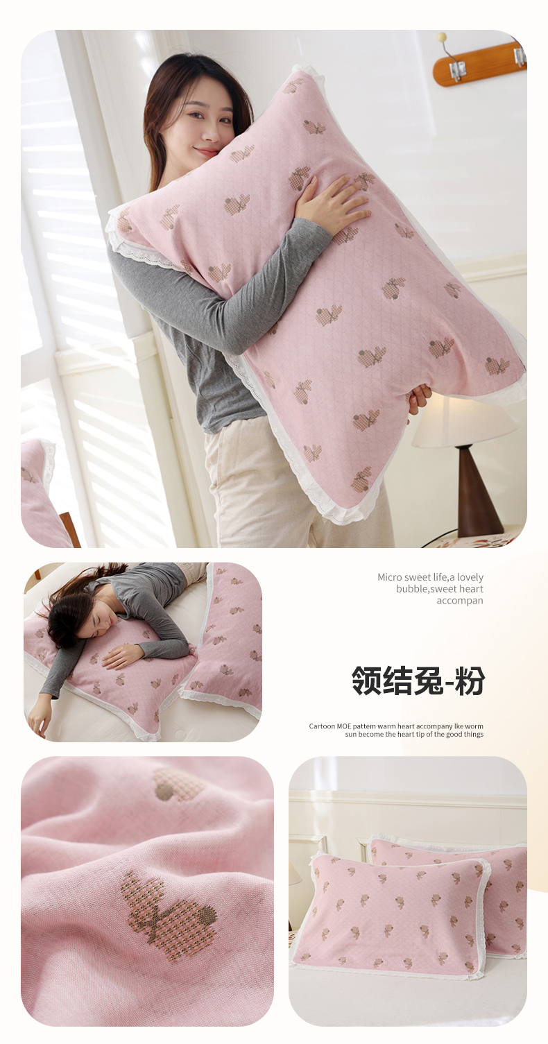 当前位置: 91家纺网 > 商品网购 > 床上用品 > 枕巾垫巾 > 朴尔家纺-毛巾被 2025新款韩版小碎花边全棉纯棉三层纱布枕巾 动物格-粉