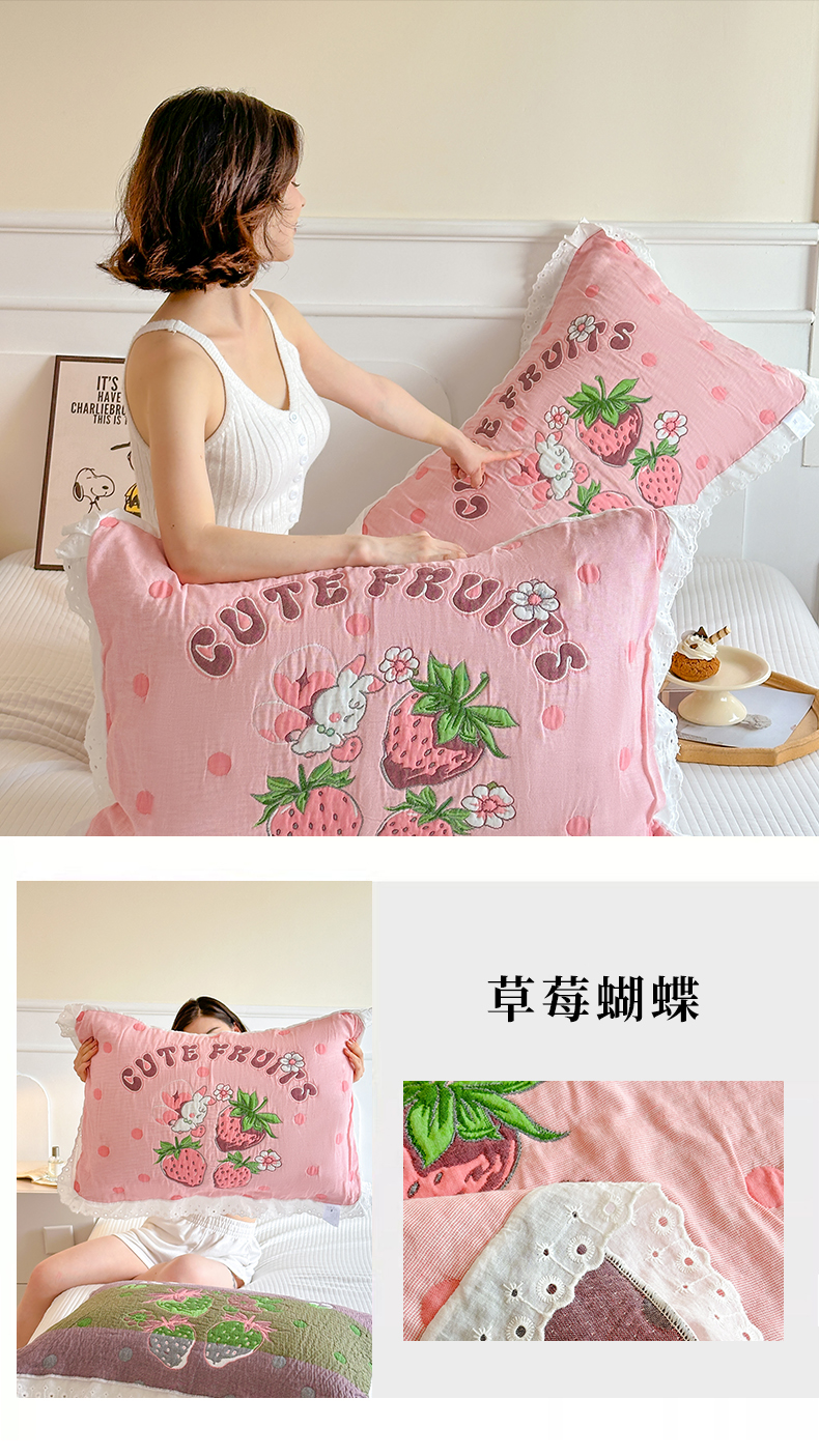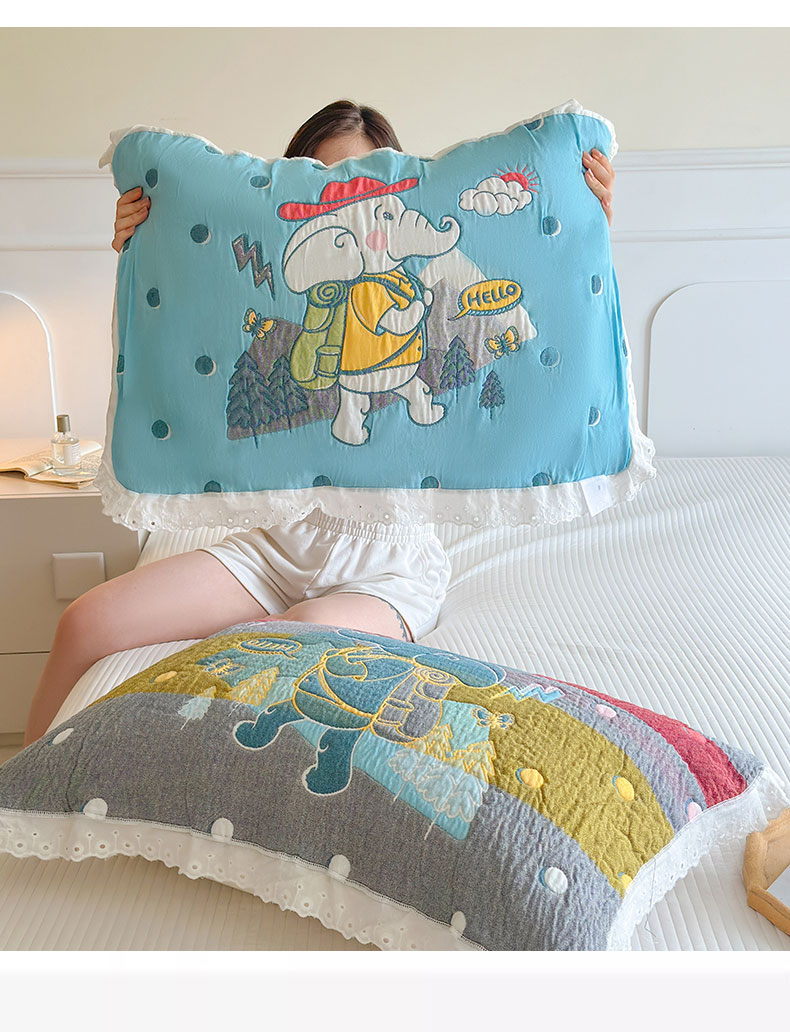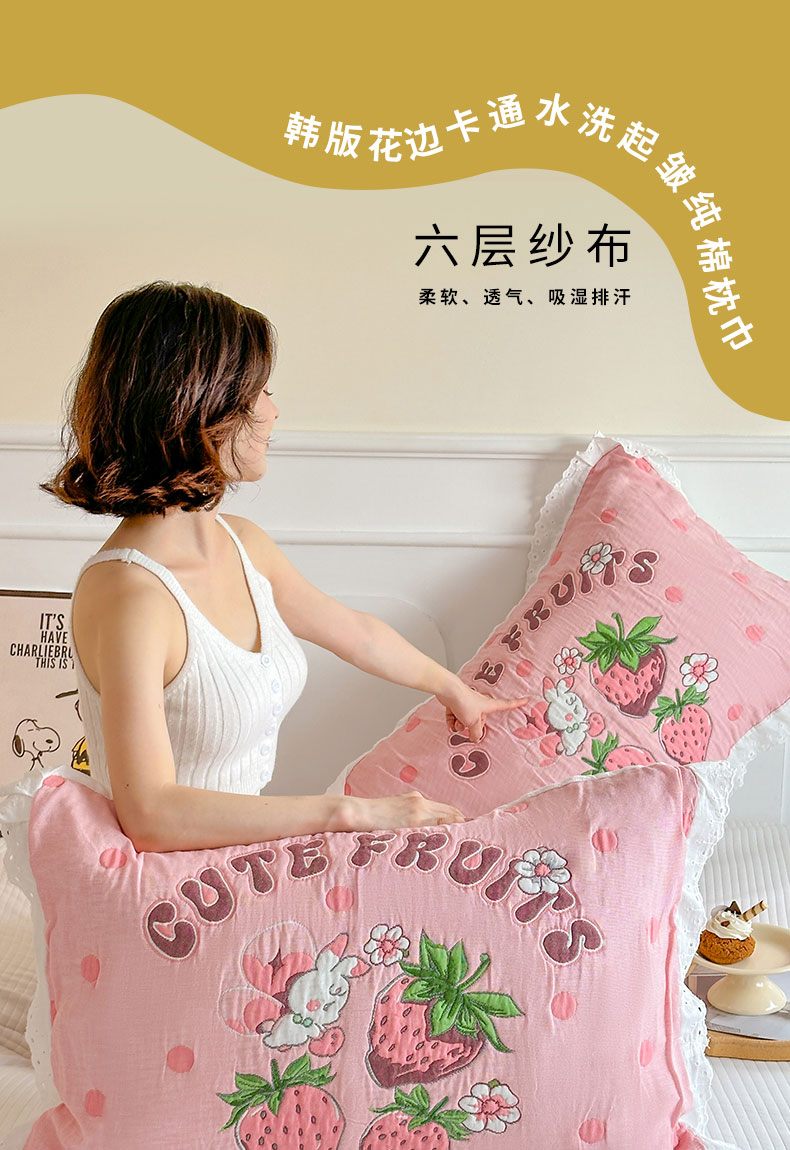 当前位置: 91家纺网 > 商品网购 > 床上用品 > 枕巾垫巾 > 朴尔家纺-毛巾被 2026新款韩版花边卡通水洗起皱纯棉六层纱布枕巾 蘑菇屋一家