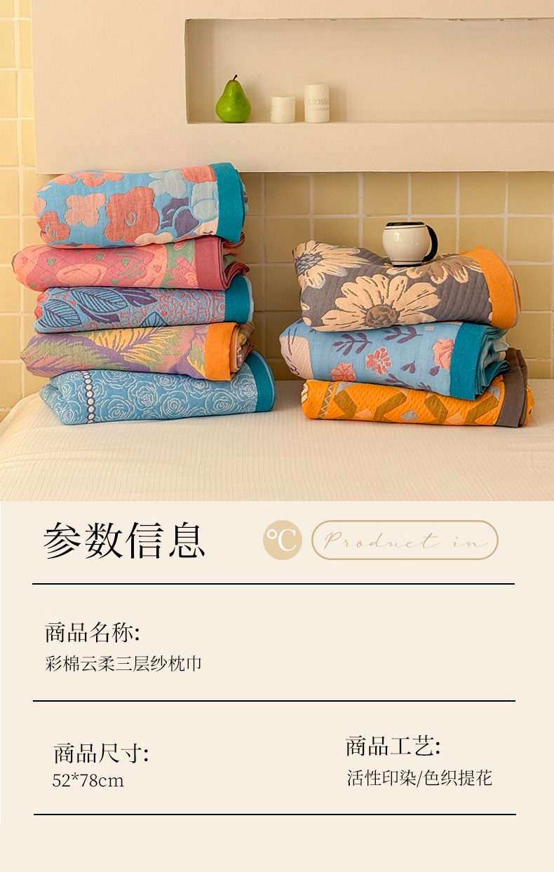 当前位置: 91家纺网 > 商品网购 > 床上用品 > 枕巾垫巾 > 朴尔家纺-毛巾被 2026新款彩棉云柔全棉纯棉三层纱布枕巾 春樱