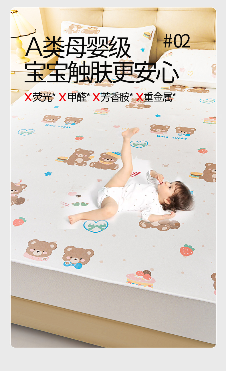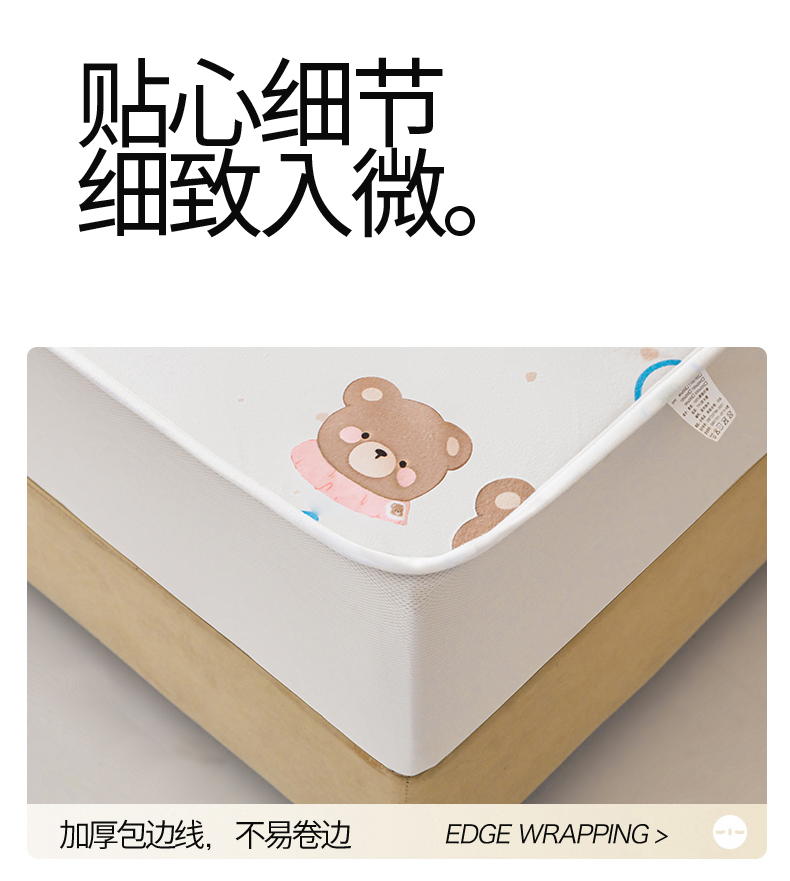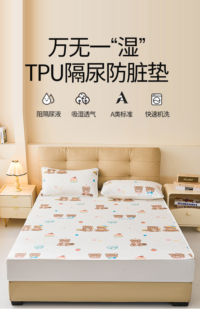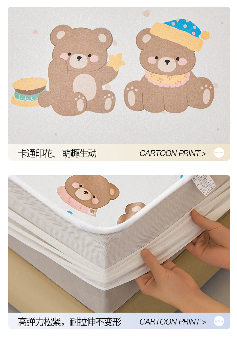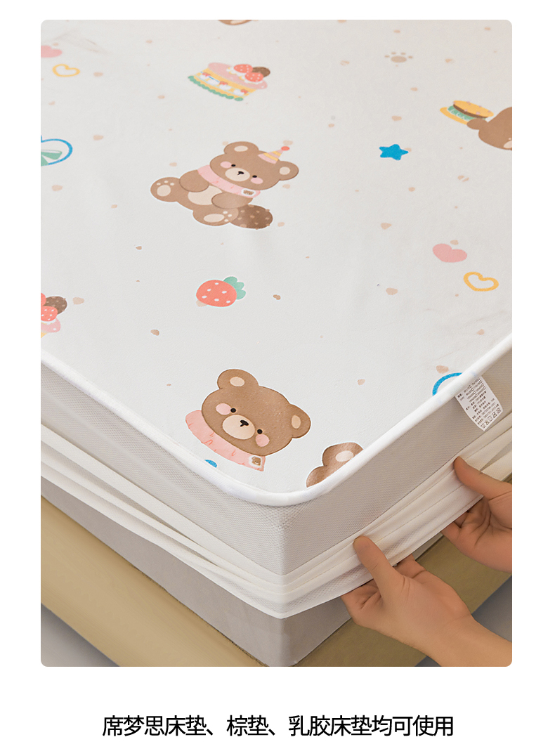 • 91家纺网 家纺一手货源 找家纺 女子家纺 2026春夏新款TPU防水隔尿床护垫床笠款印花小清新卡通儿童床垫保护套 防水床笠-小伙伴