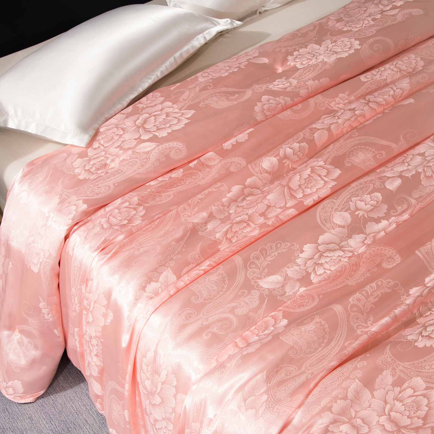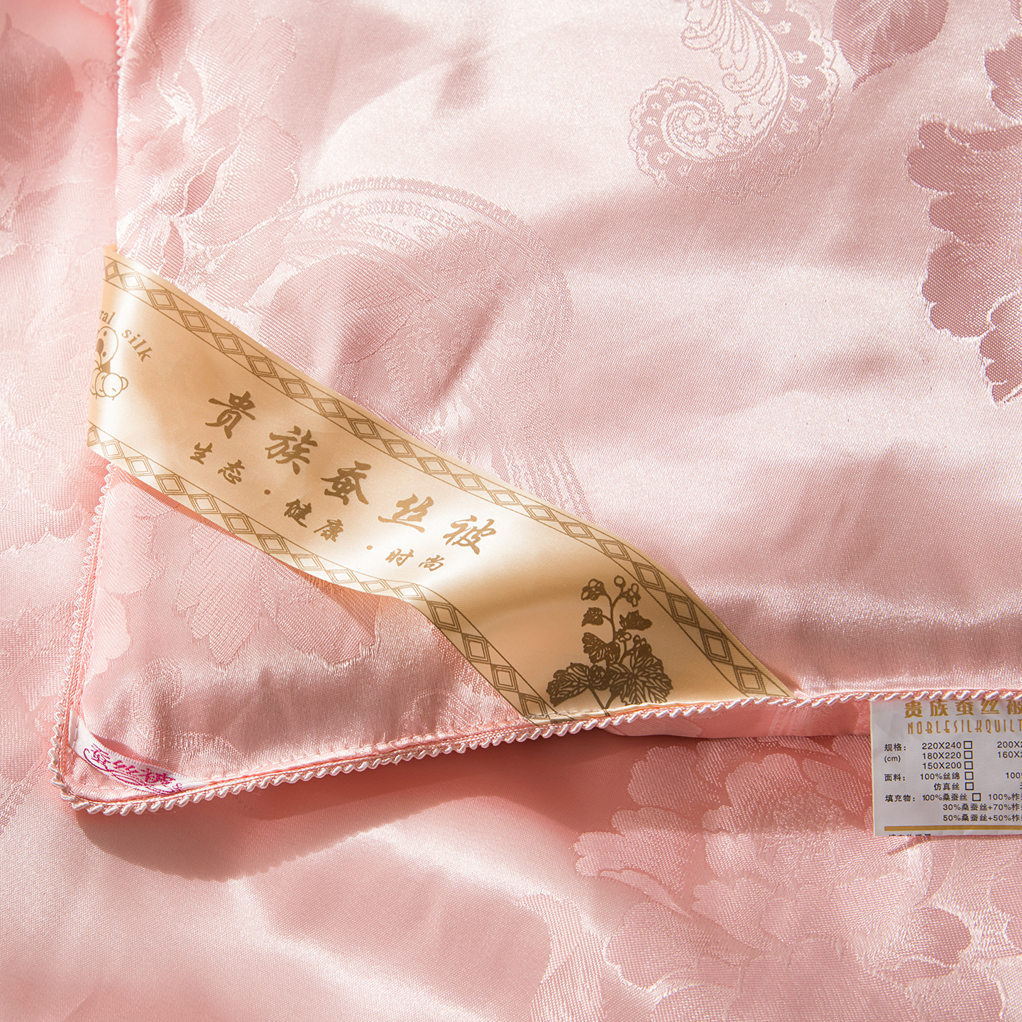 商品名称:鑫田家纺 2026新款100%蚕丝被柞蚕丝夏凉被牡丹花大提花春秋被冬被子母被礼品被夏被桑蚕丝被 牡丹花-玉色