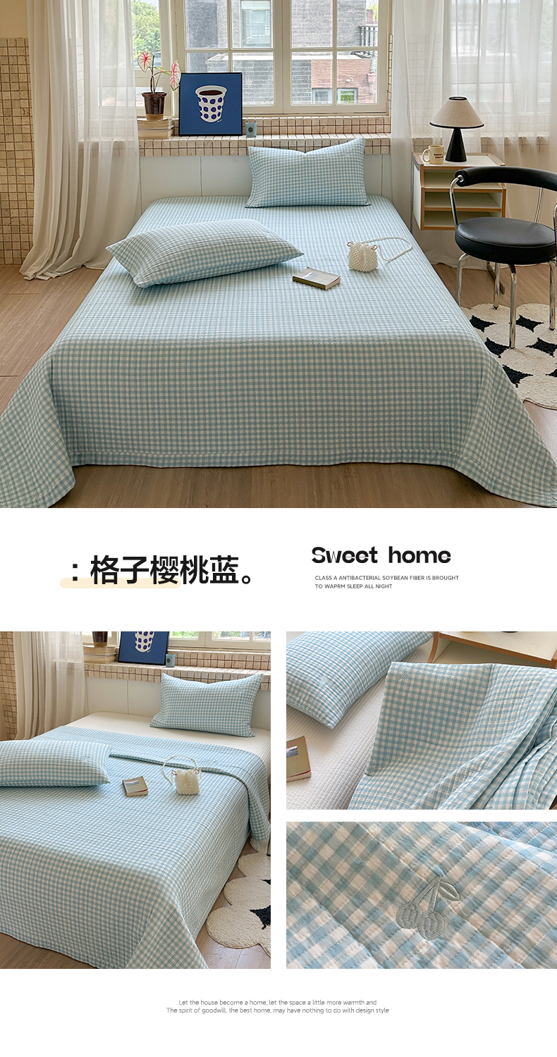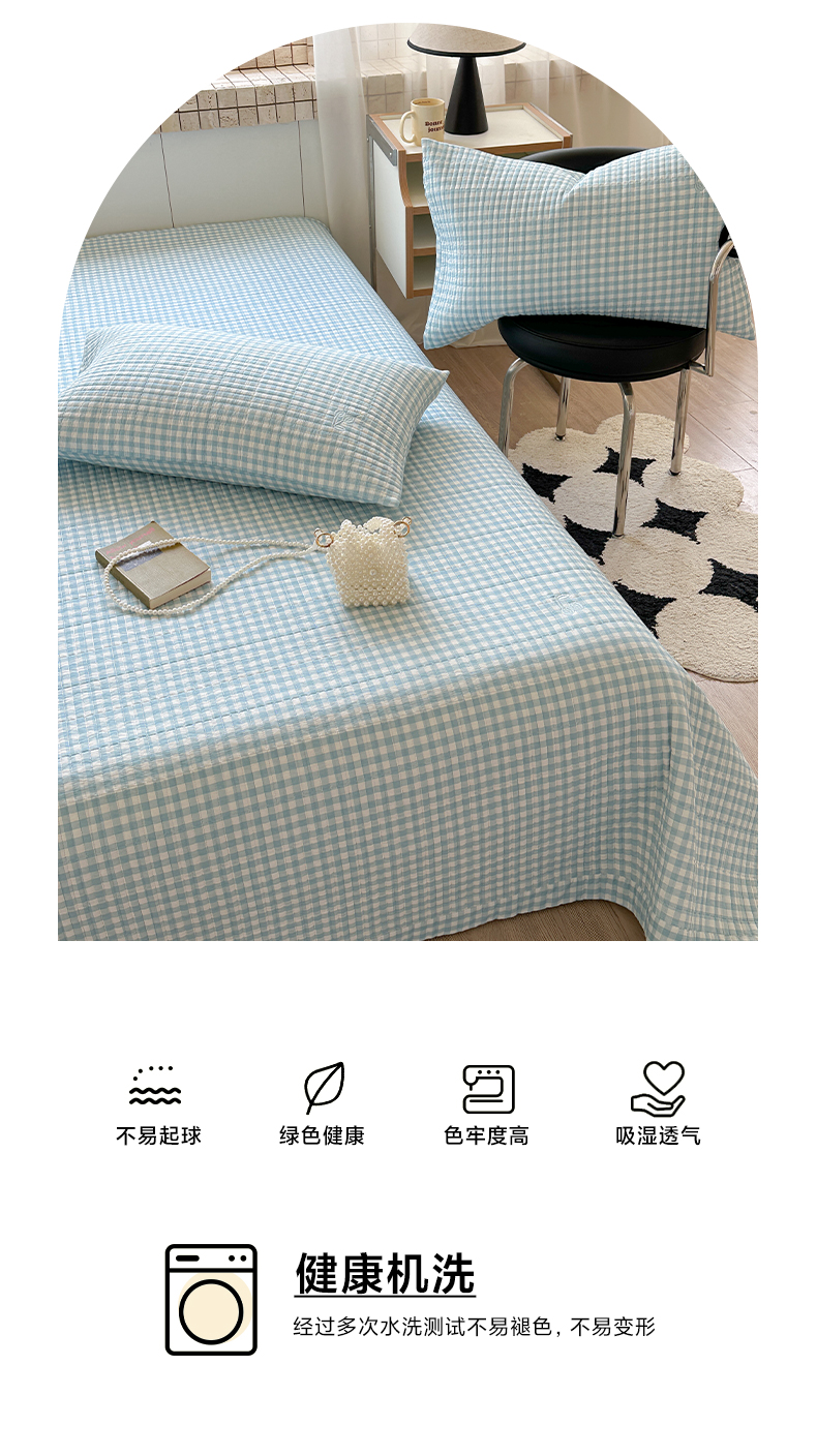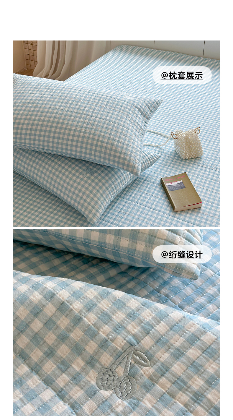商品名称:琳可家居 2026春夏新品双面斜纹全棉印花绣花床盖可机洗加密绗缝高温水洗 格子樱桃蓝