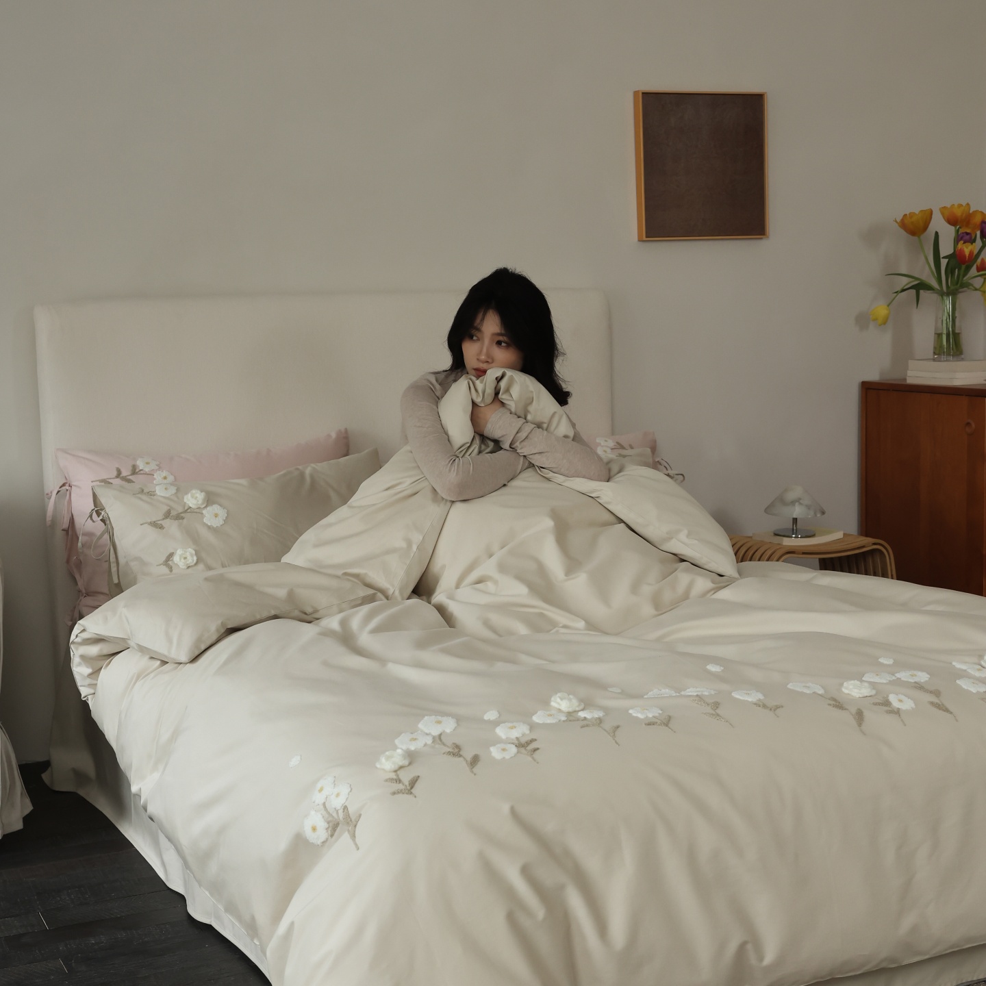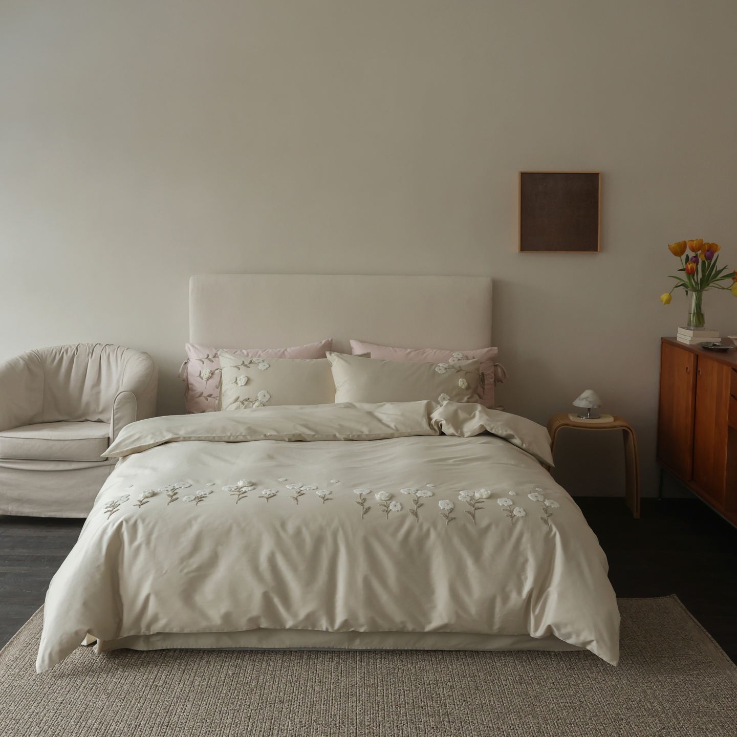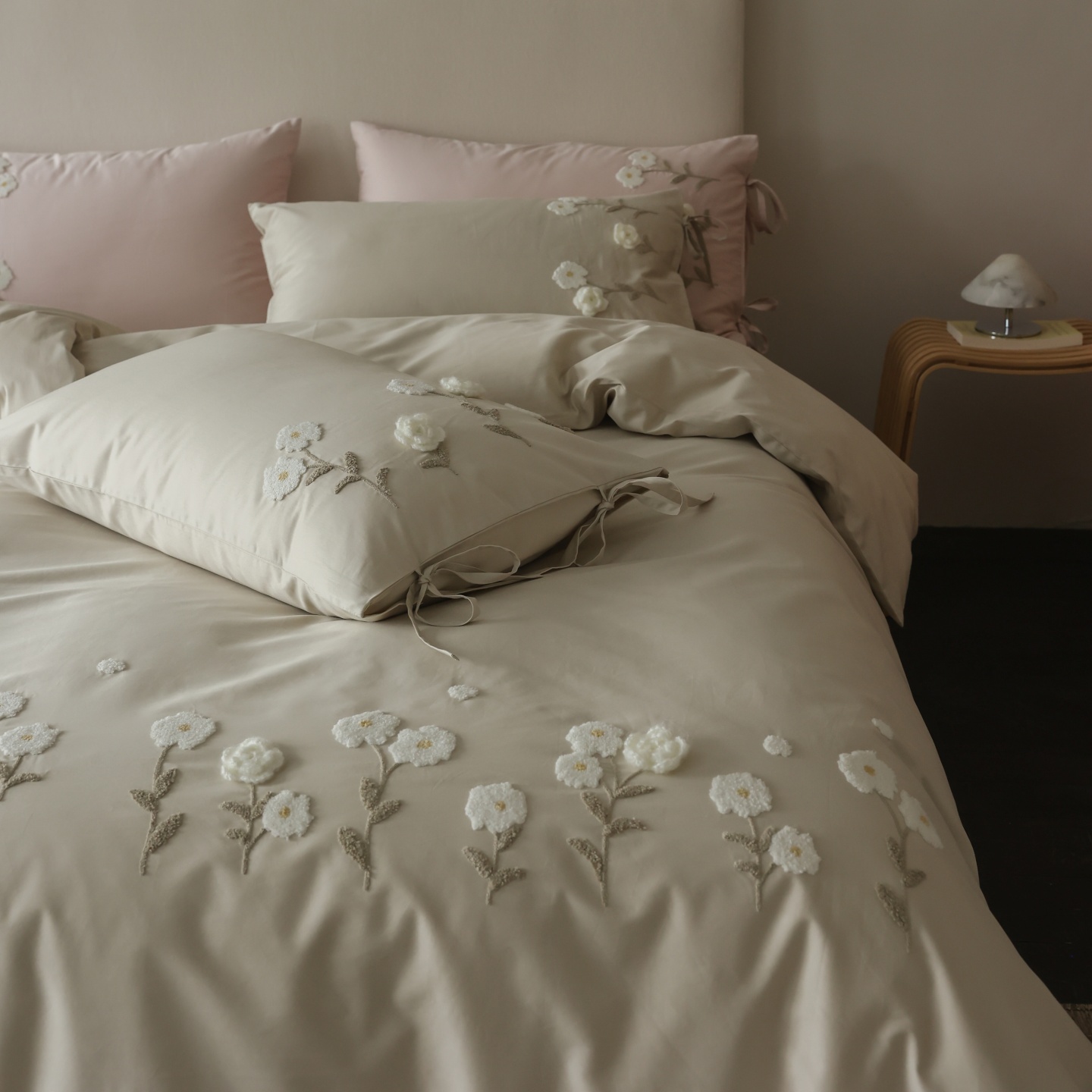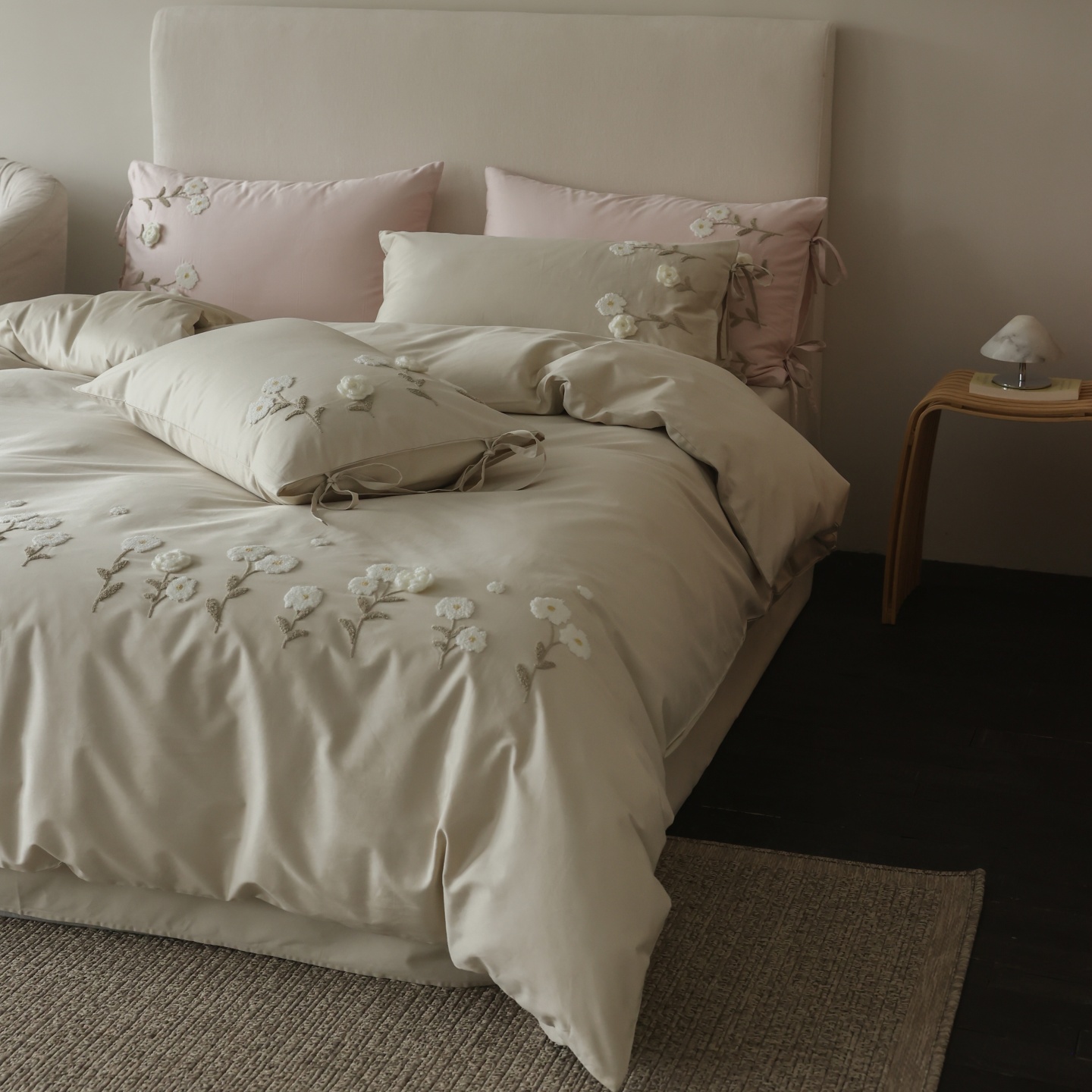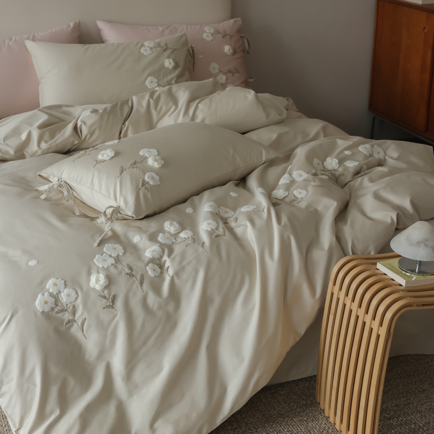 (总)初拾 2025新款全棉简约刺绣四件套-柏林,柏林-浅香槟,柏林-浅云蓝,柏林-雅灰粉