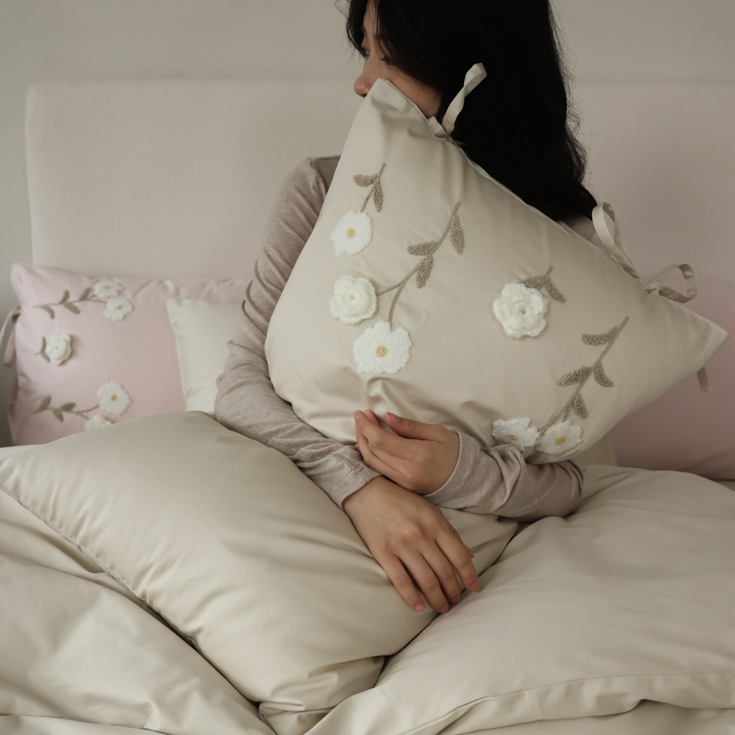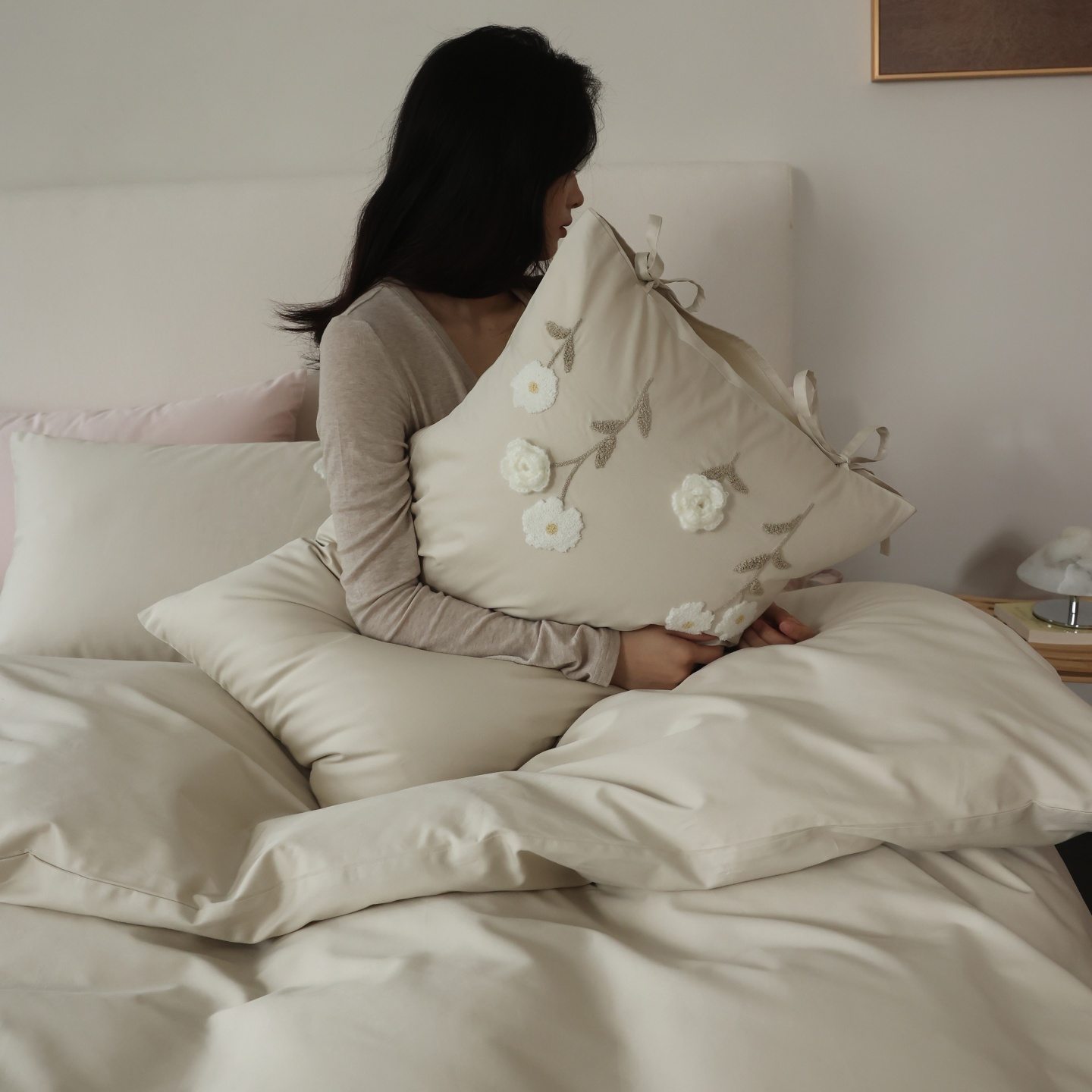 (总)初拾 2026新款贡缎全棉打褶“miu感”绣花四件套-欢乐颂(会员减20,控价 日常券后不低于368元),欢乐颂-钢琴白,欢乐颂-浅樱紫,欢乐颂-山茶粉,欢乐颂-星夜灰