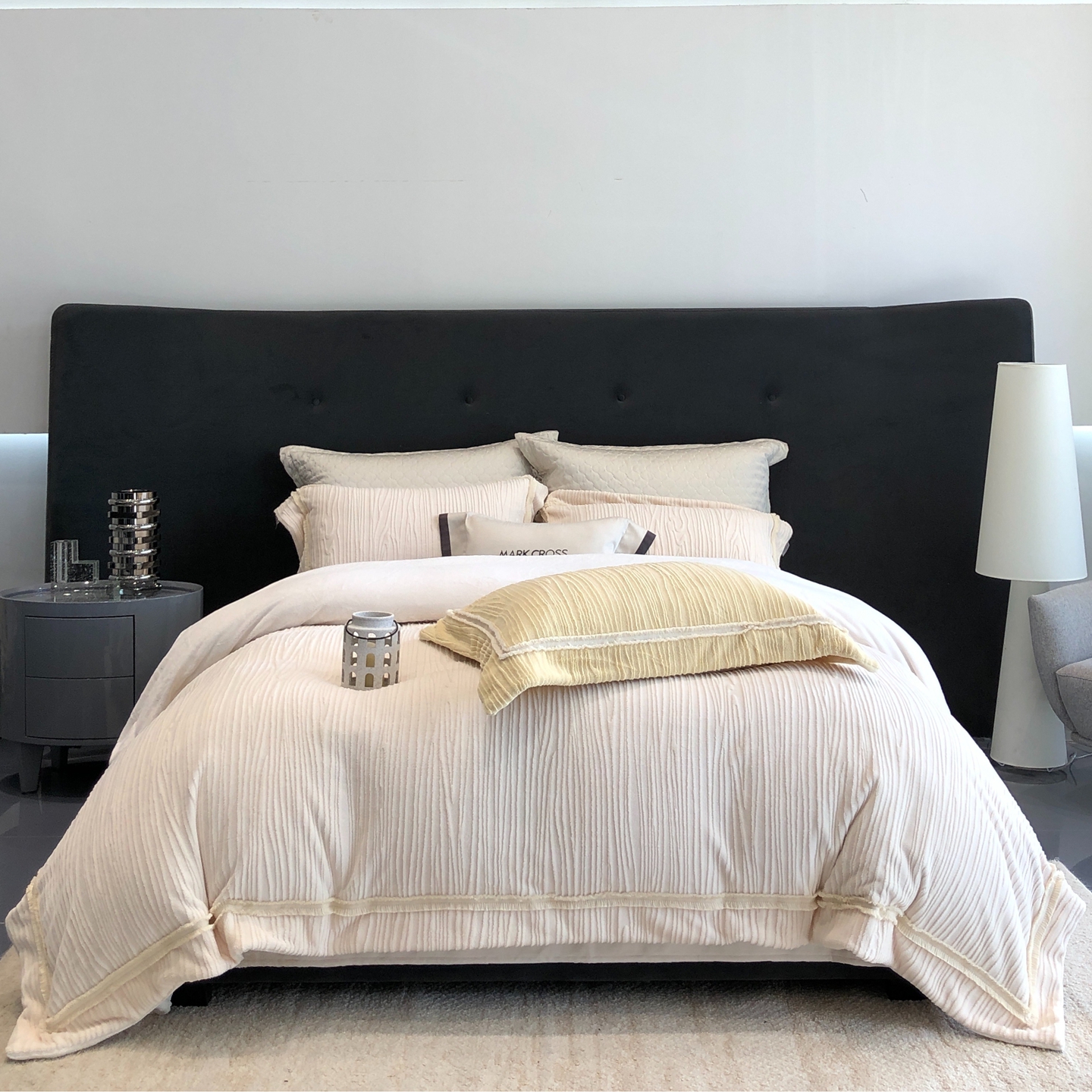 (总)佳汐蓝家纺 2026新款新疆长绒棉全棉纯棉轻奢五线刺绣四件套,初雪白,稻谷米,冷釉灰,汐雾蓝,薰衣紫,釉粉,朱砂红