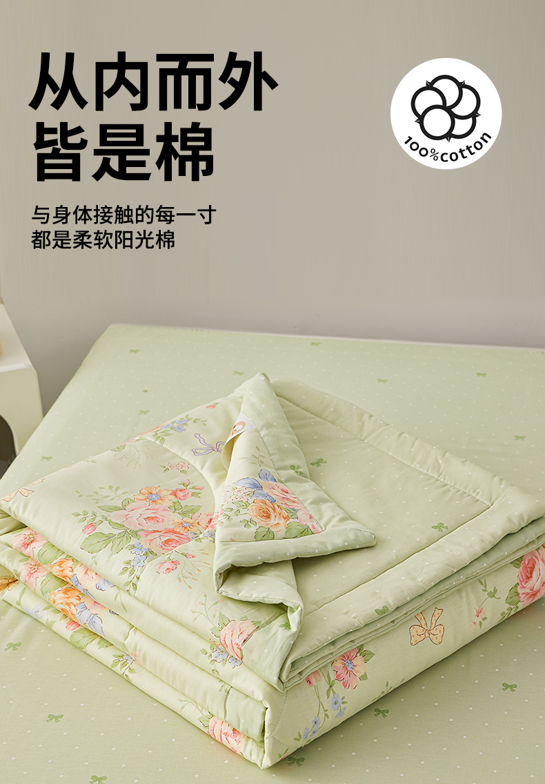 尊妙被业 2026新款小清新花卉里外全棉纯棉棉花被夏被夏凉被空调被 恋夏花开-绿