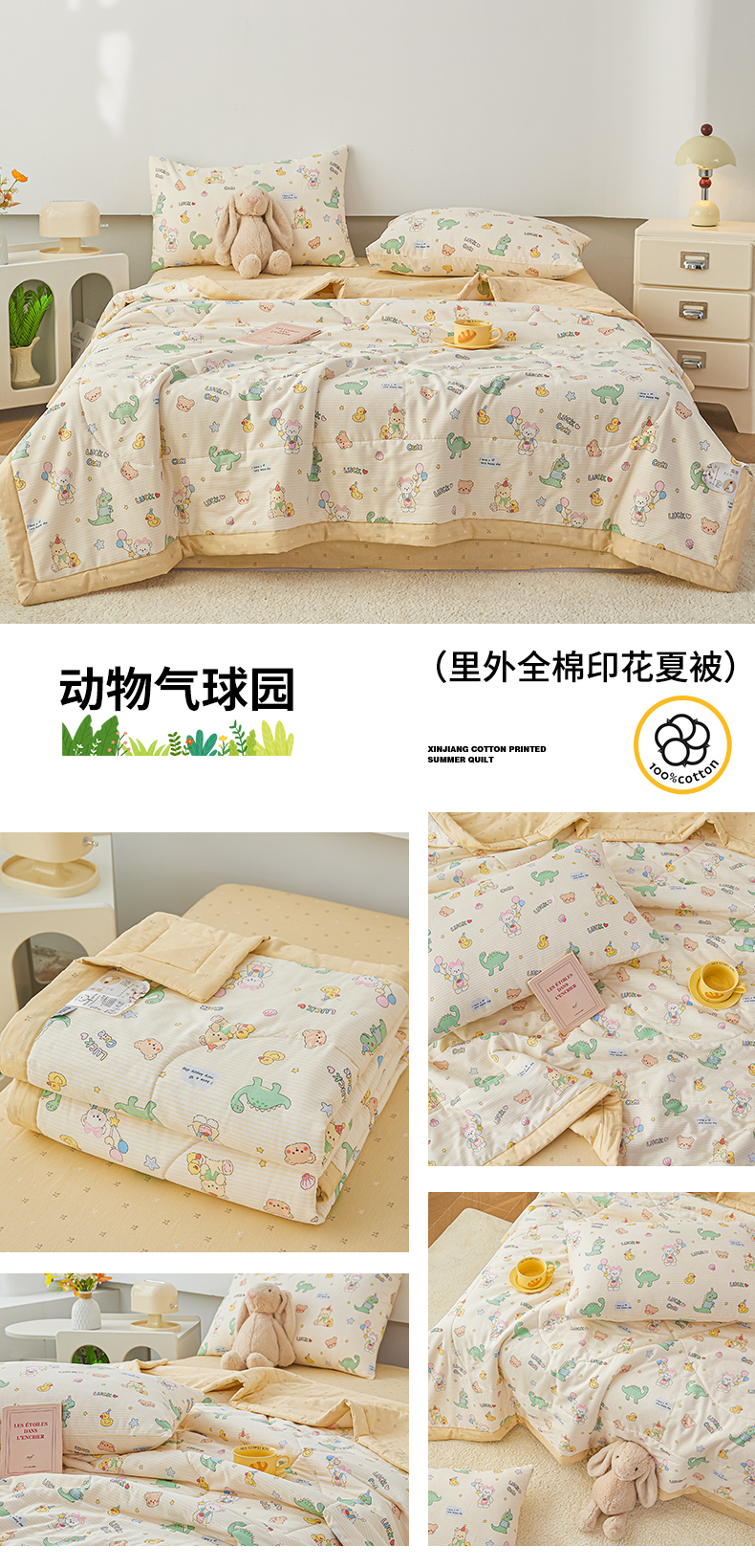 (总)尊妙被业 2026年新款全棉纯棉印花100%棉花夏被四件套被子被芯-卡通风,熊猫戏水-绿,冰淇淋派对,春日拾叶,嘟嘟联盟,海浪摇篮,凯蒂小姐-兰,可达鸭,蜜罐物语,蜜糖晴天,喜悦小咪,星梦童话,星星宝贝,星星漫游记,云朵车行