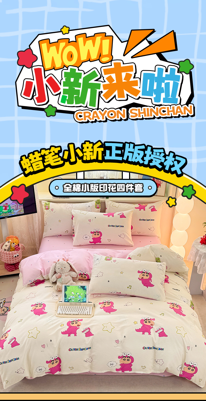 当前位置: 91家纺网 > 商品网购 > 床品套件 > 四件套 > 全棉普通四件套 > 博雅 2026新款蜡笔小新纯棉全棉四件套 小版-恐龙蜡笔小新