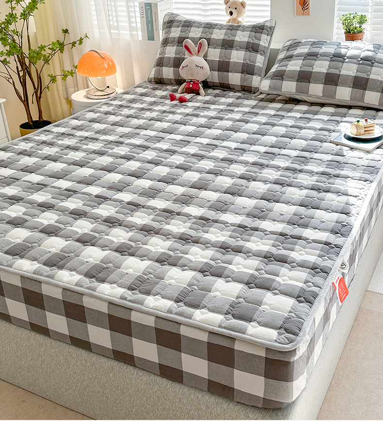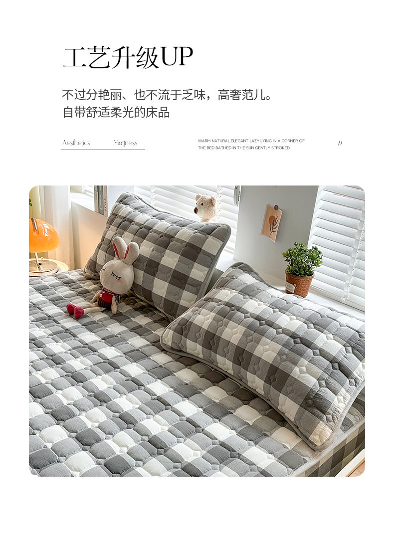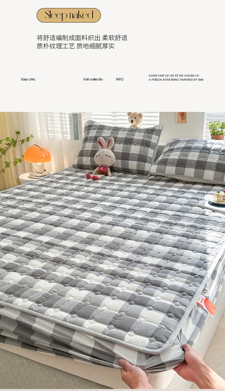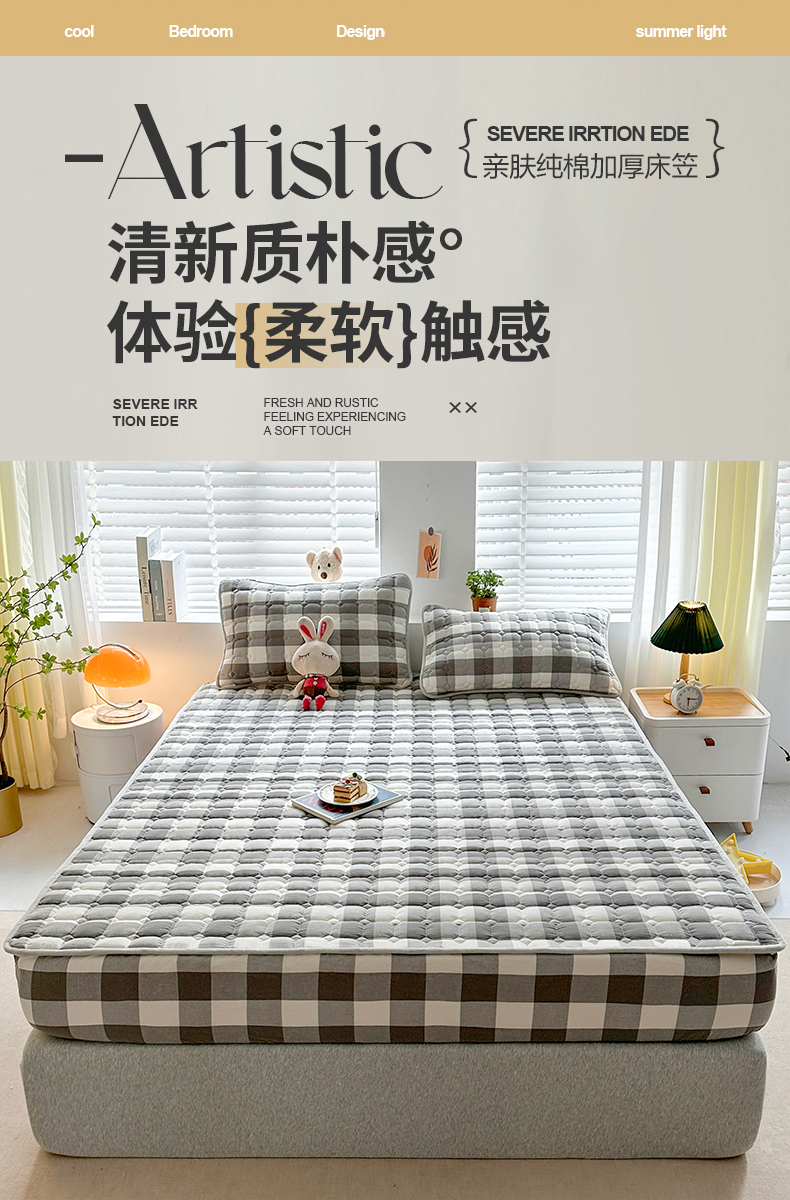 犇牛仓储供应链 2026新款亲肤纯棉加厚床笠 时尚灰中格