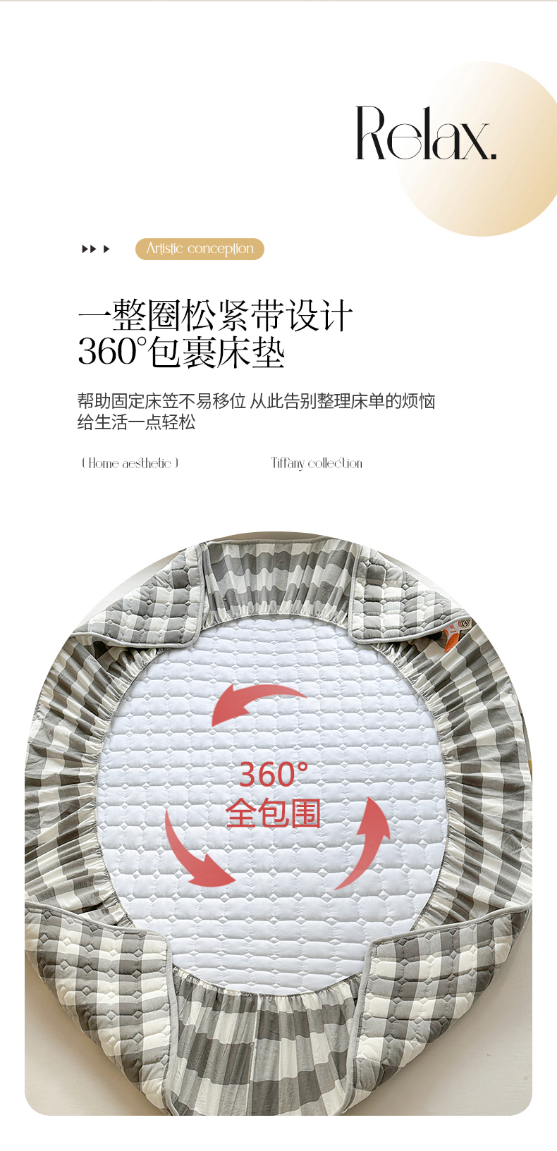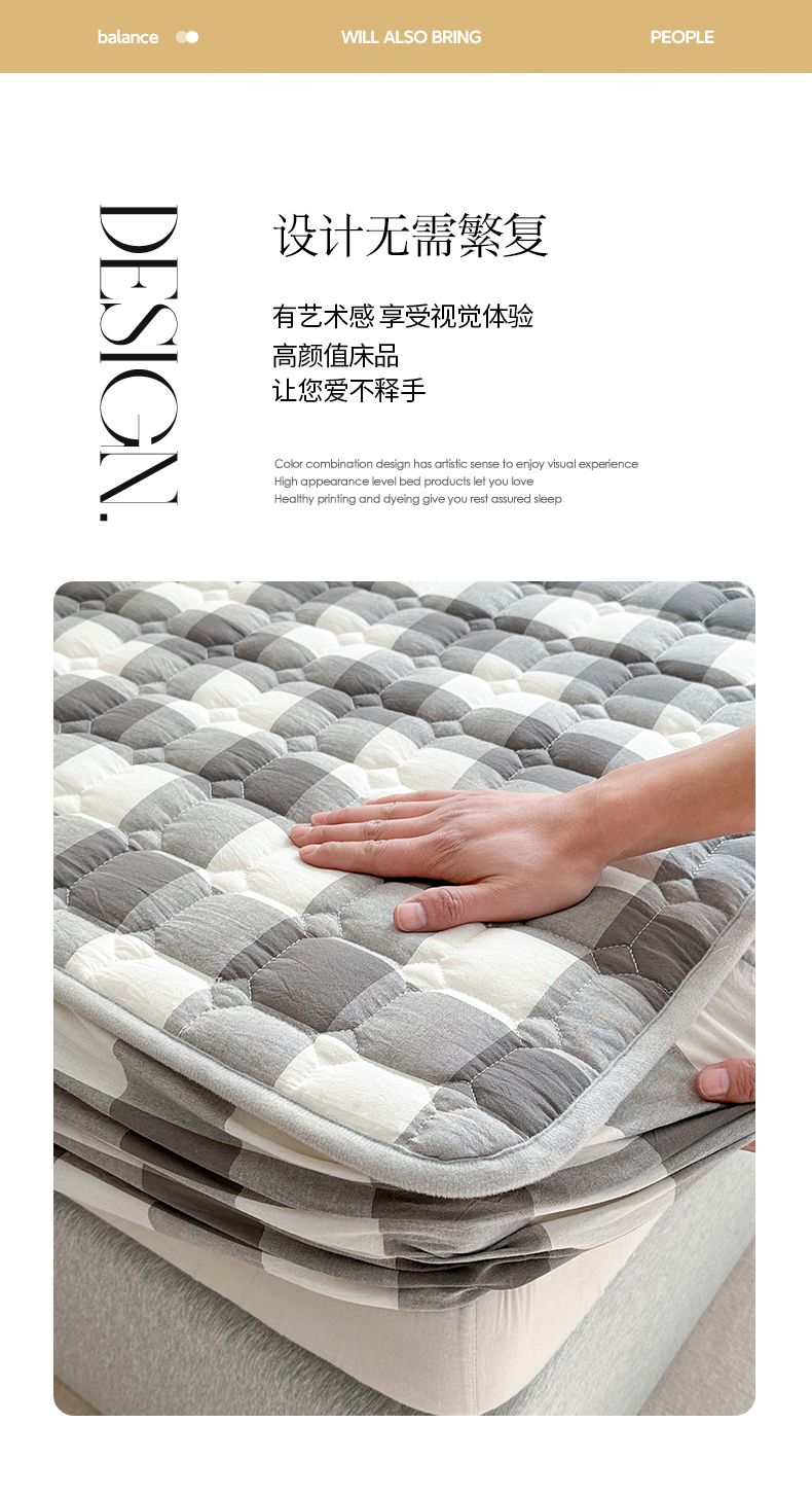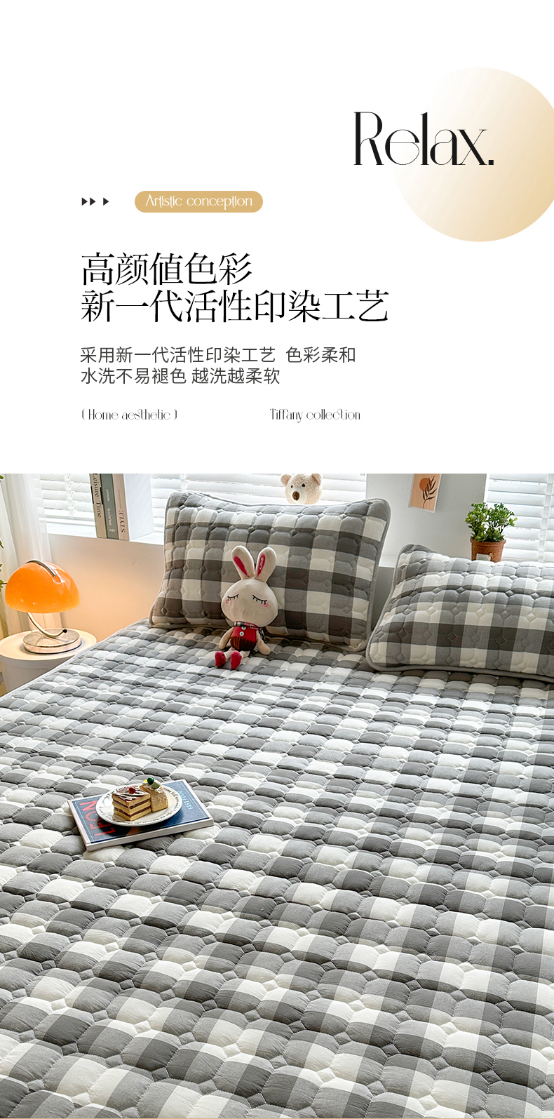 犇牛仓储供应链 2026新款亲肤纯棉加厚床笠 时尚灰中格