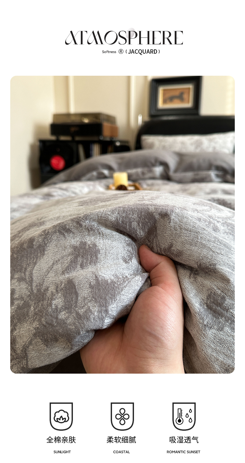 米菲 2026新款全棉色织提花四件套 克洛伊-灰