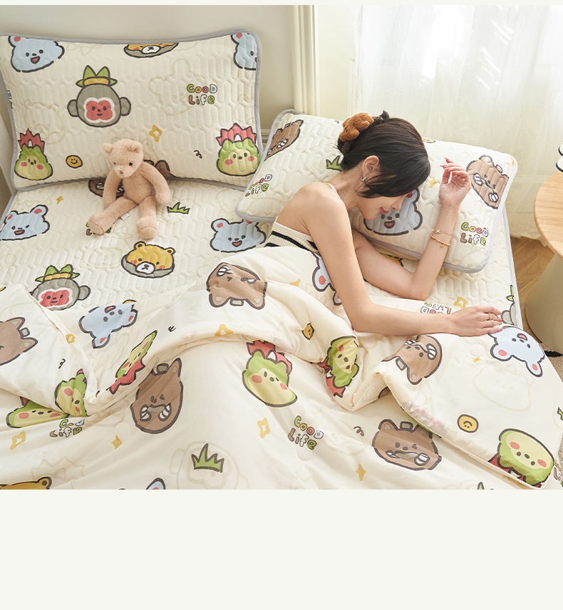(总)恒爱家纺 2026新款A类凉感冰豆豆凉席系列三件套,轻松熊-粉,轻松熊-灰,轻松熊-蓝,轻松熊-绿,一马当先-粉,一马当先-灰,一马当先-咖,一马当先-蓝