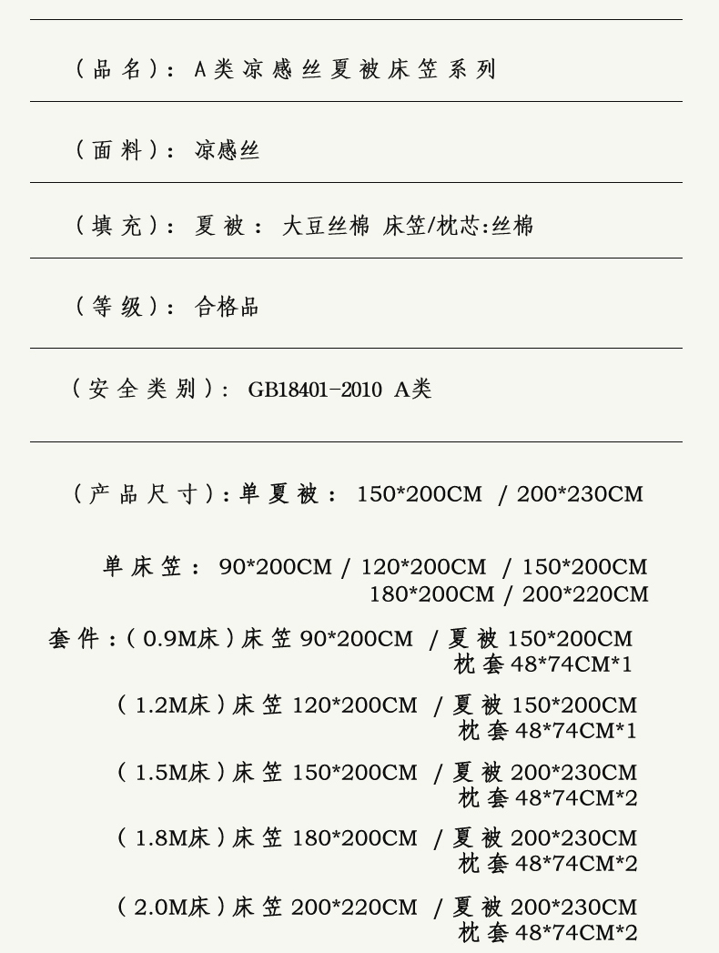 • 适用季节: 空调被/夏凉被
