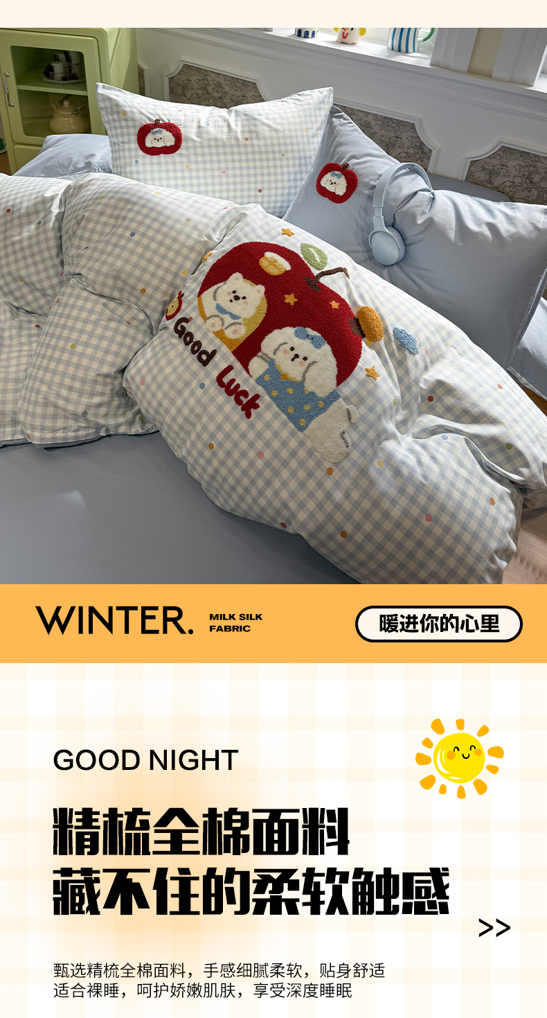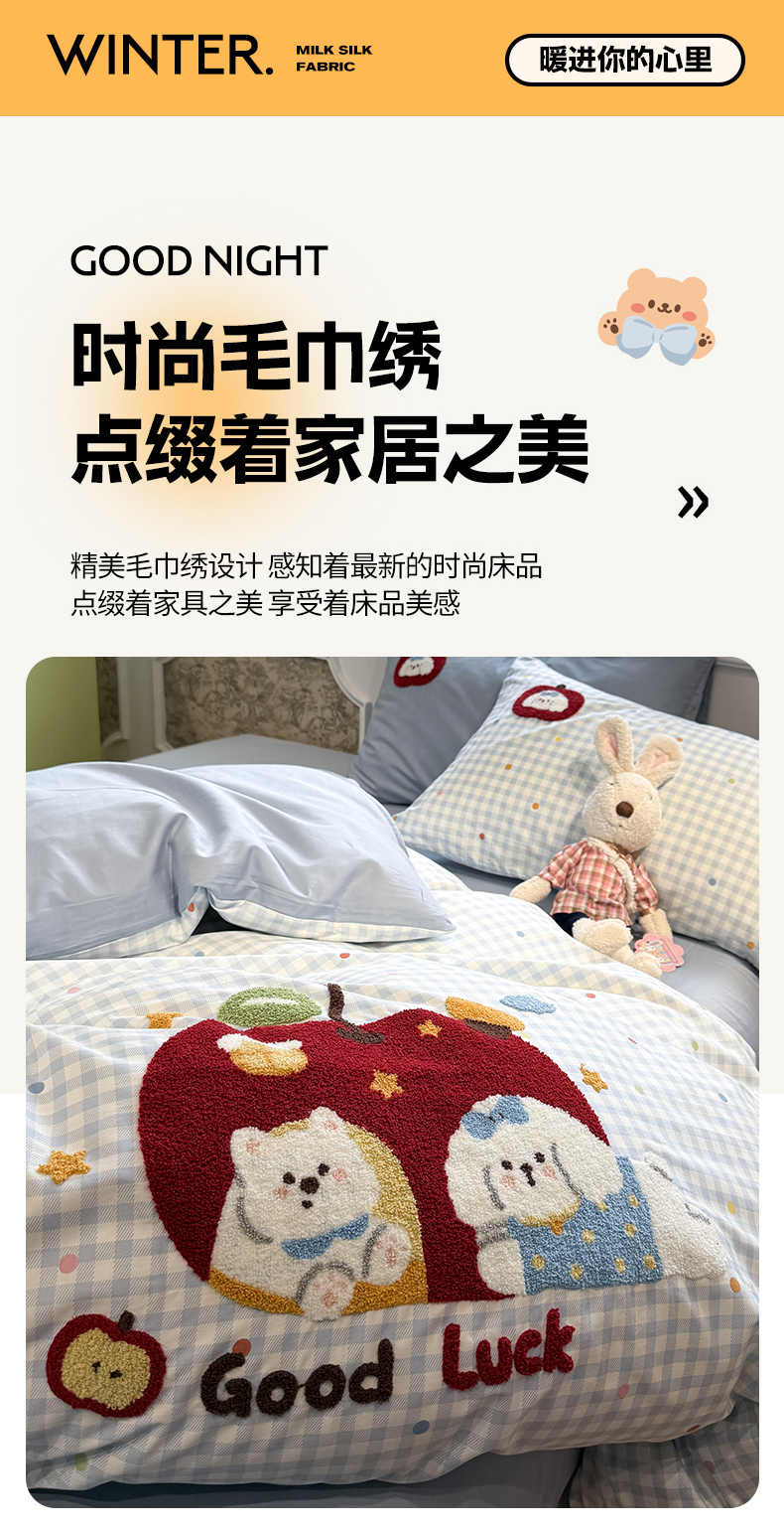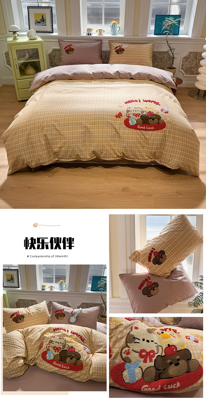 (总)欣宜家纺 2026新款全棉纯棉卡通毛巾绣四件套床上用品套件