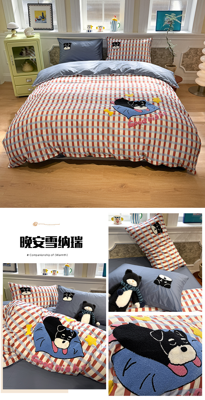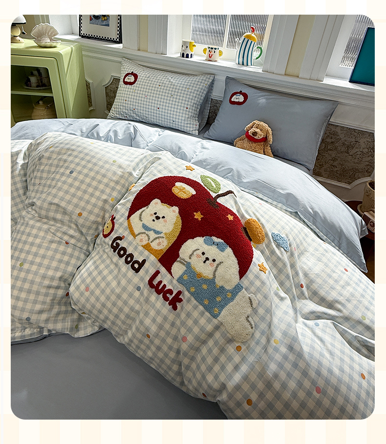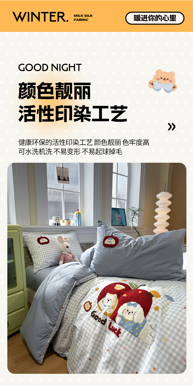 (总)欣宜家纺 2026新款全棉纯棉卡通毛巾绣四件套床上用品套件