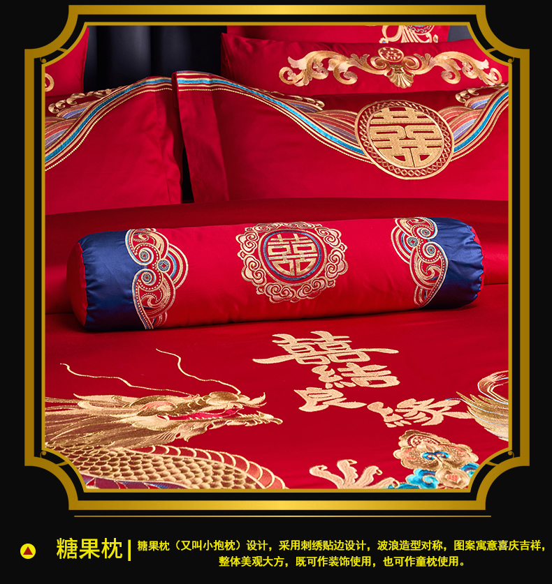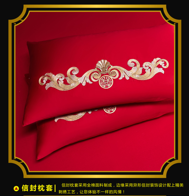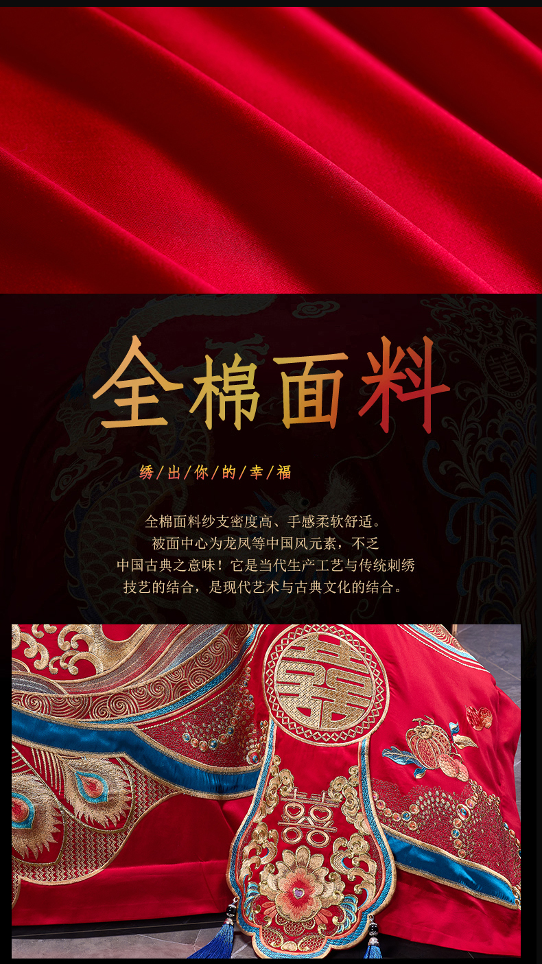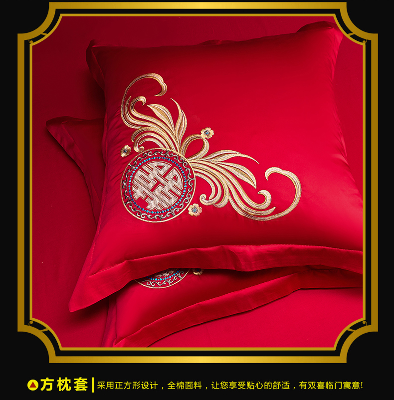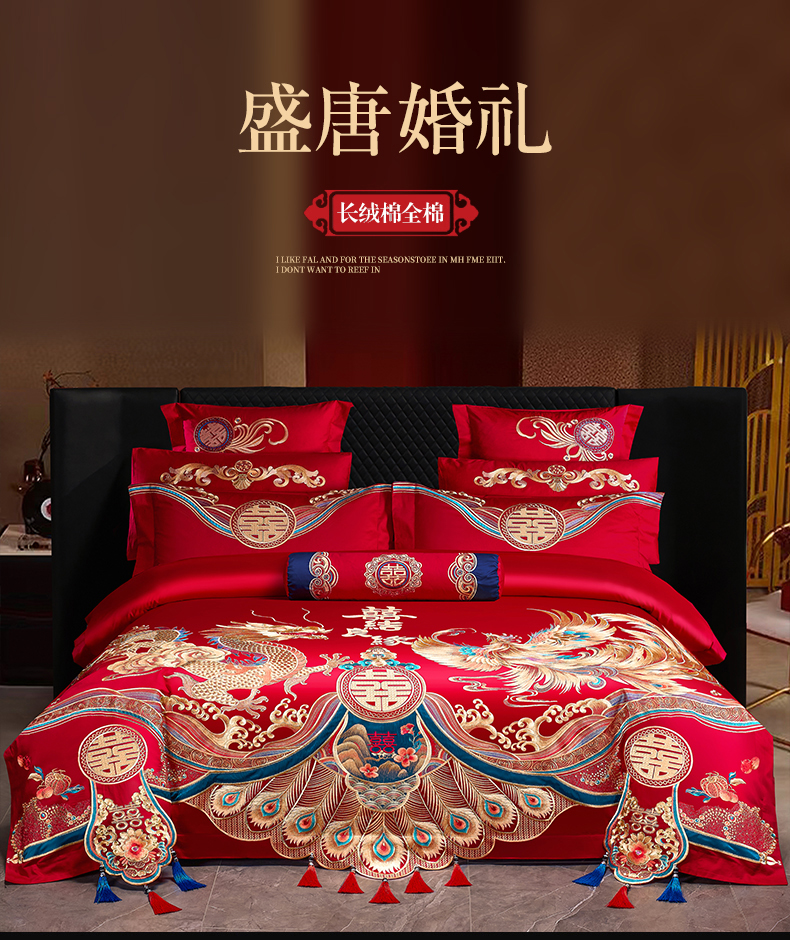 当前位置: 91家纺网 > 商品网购 > 床品套件 > 四件套 > 婚庆四件套 > 慕她家纺 2026年全棉纯棉婚庆四件套大红色刺绣结床上用品(床盖款加40) 盛唐婚礼
