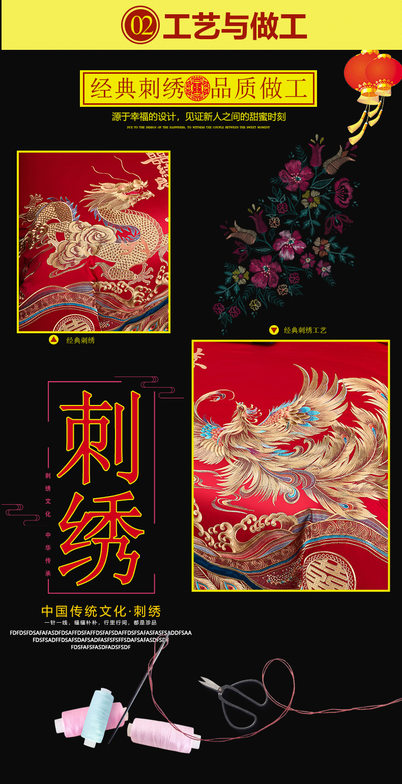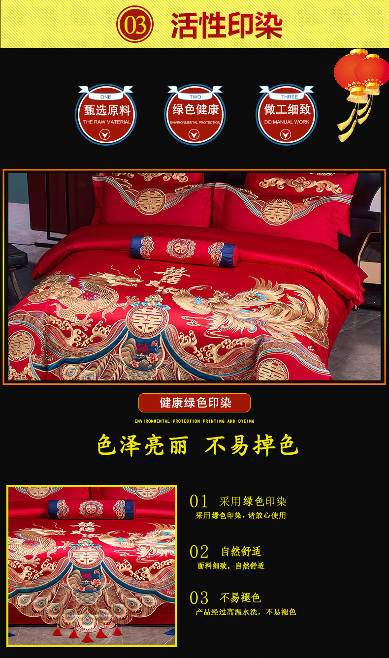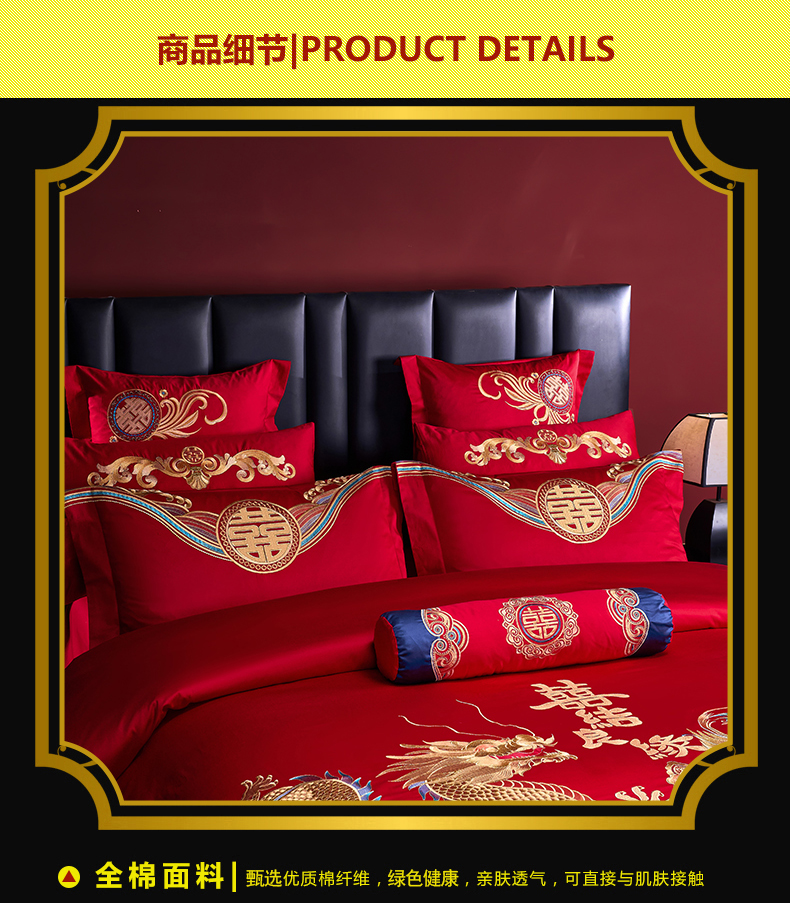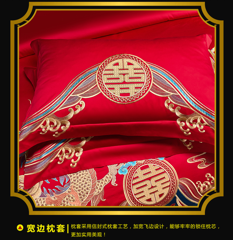 当前位置: 91家纺网 > 商品网购 > 床品套件 > 四件套 > 婚庆四件套 > 慕她家纺 2026年全棉纯棉婚庆四件套大红色刺绣结床上用品(床盖款加40) 盛唐婚礼