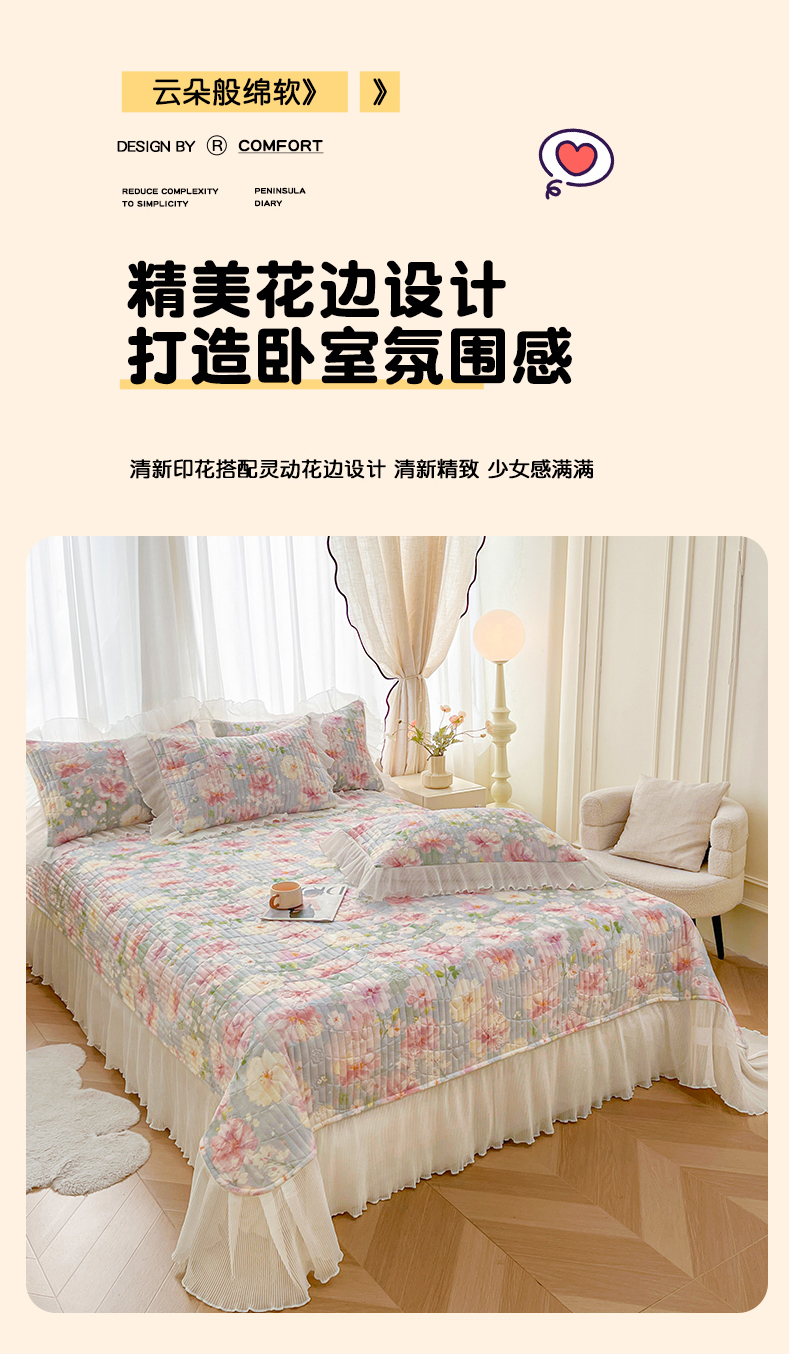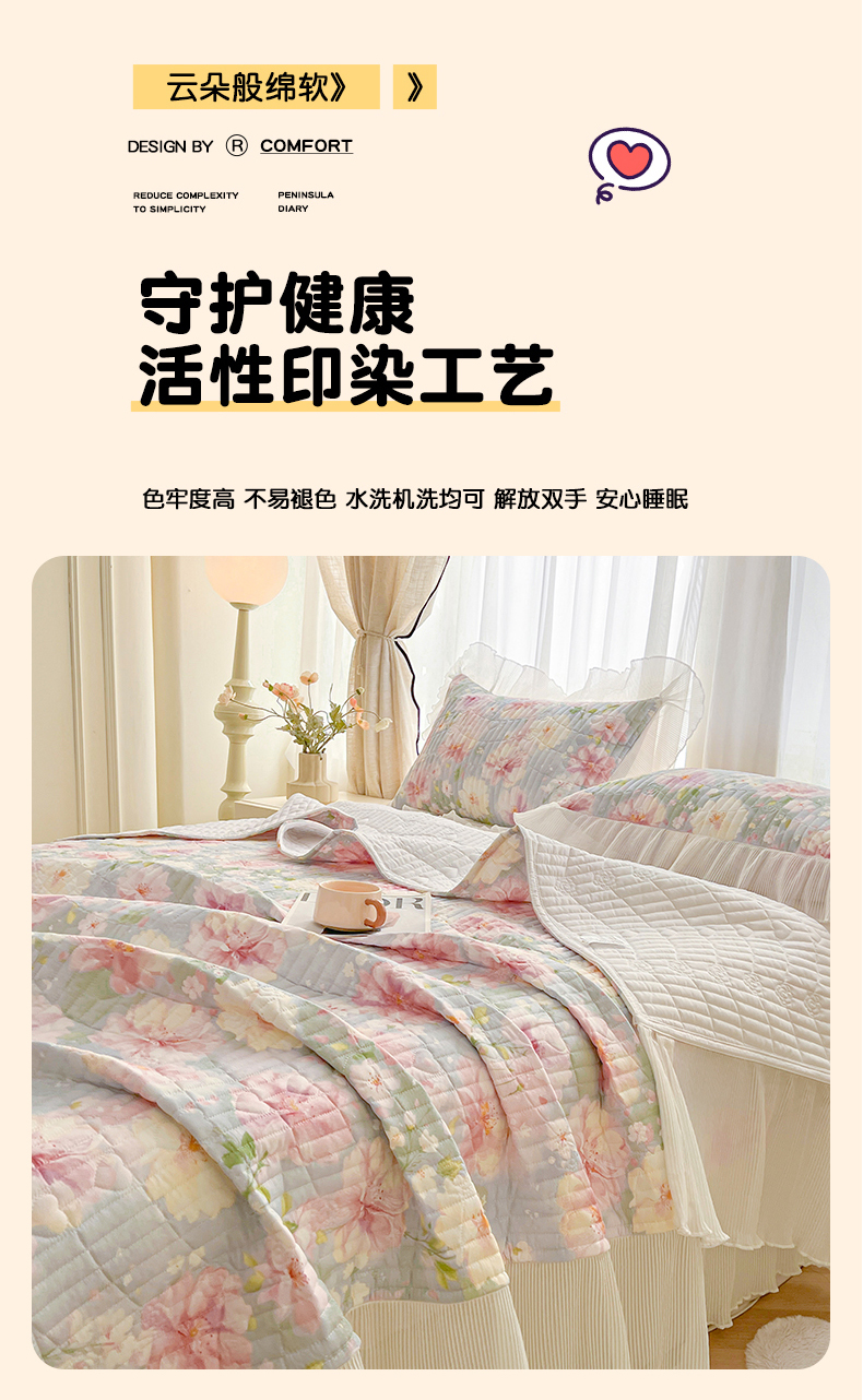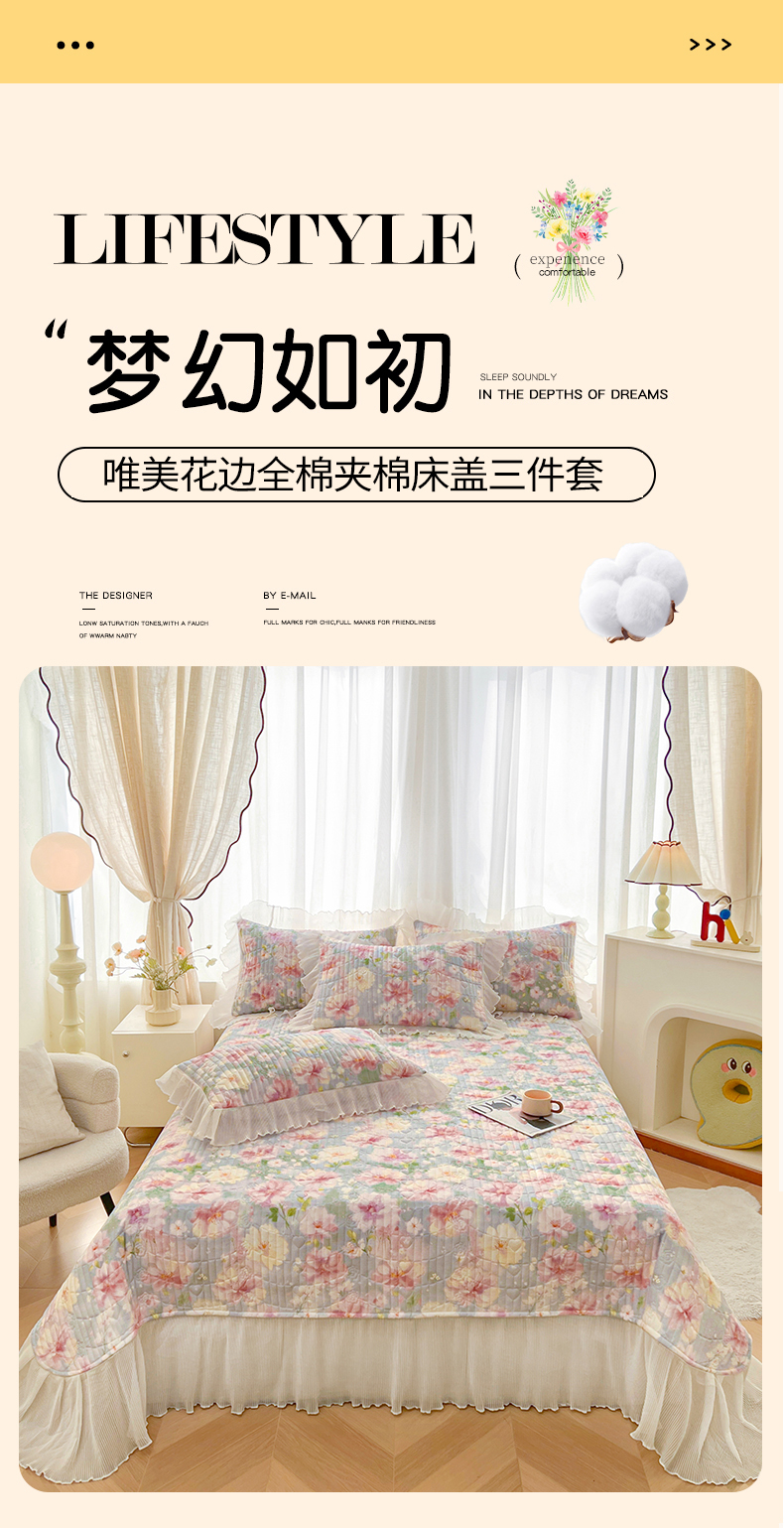 当前位置: 91家纺网 > 商品网购 > 床品套件 > 三件套 > 宜凡家纺 2026新款全棉印花雪纺夹棉床盖三件套 花未央