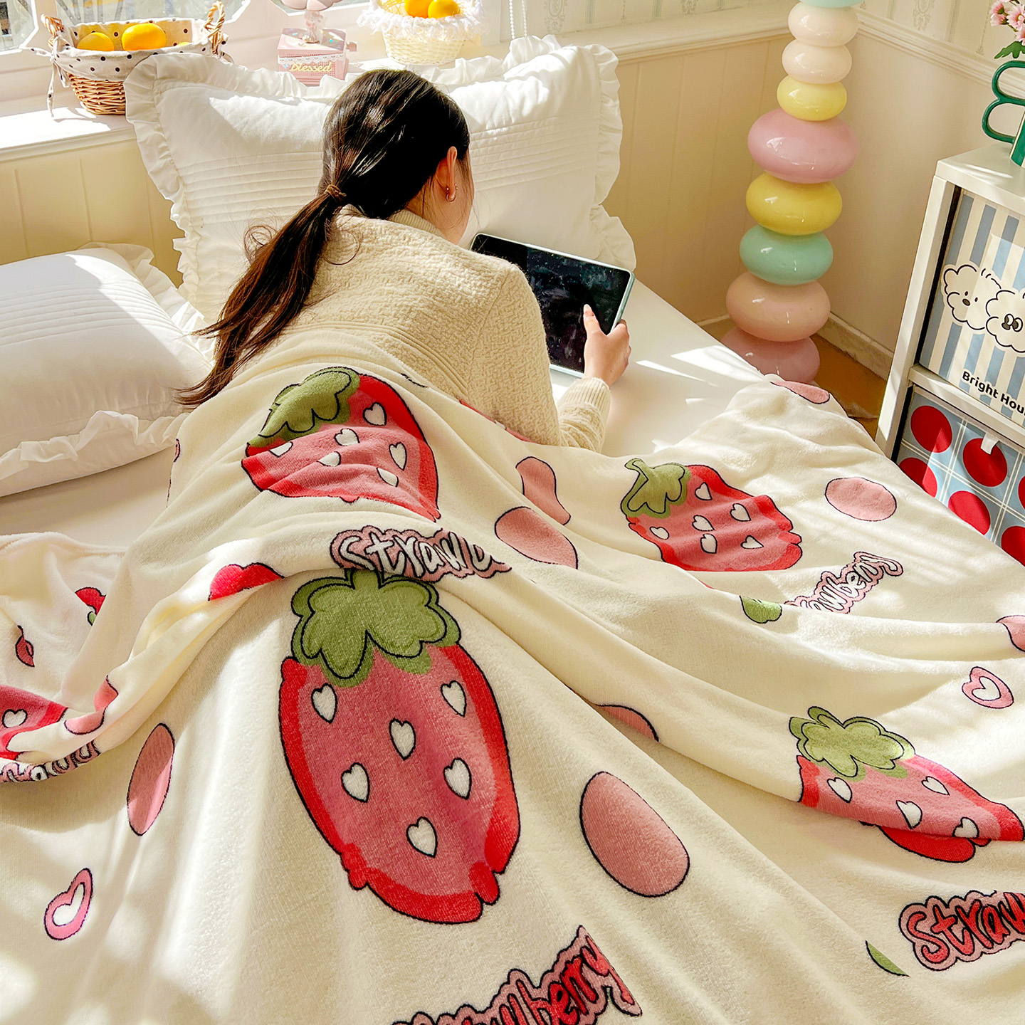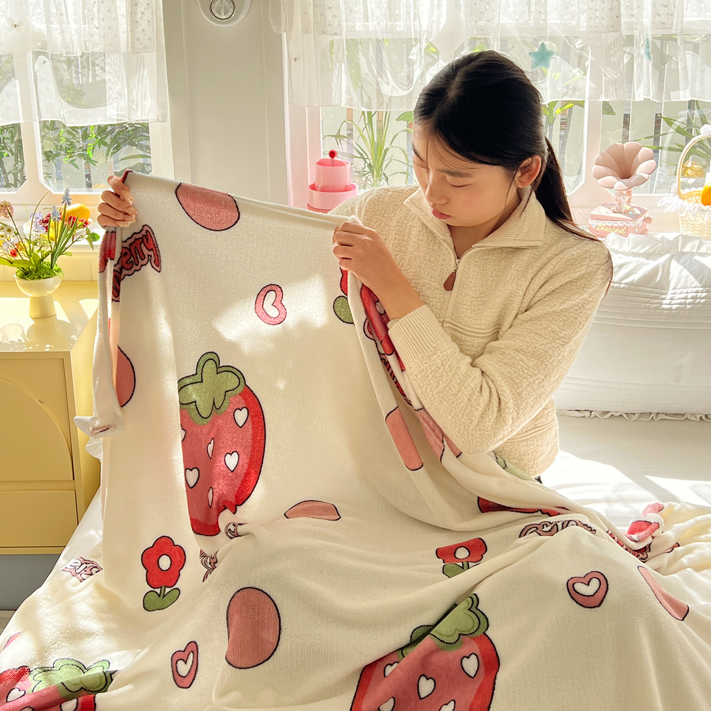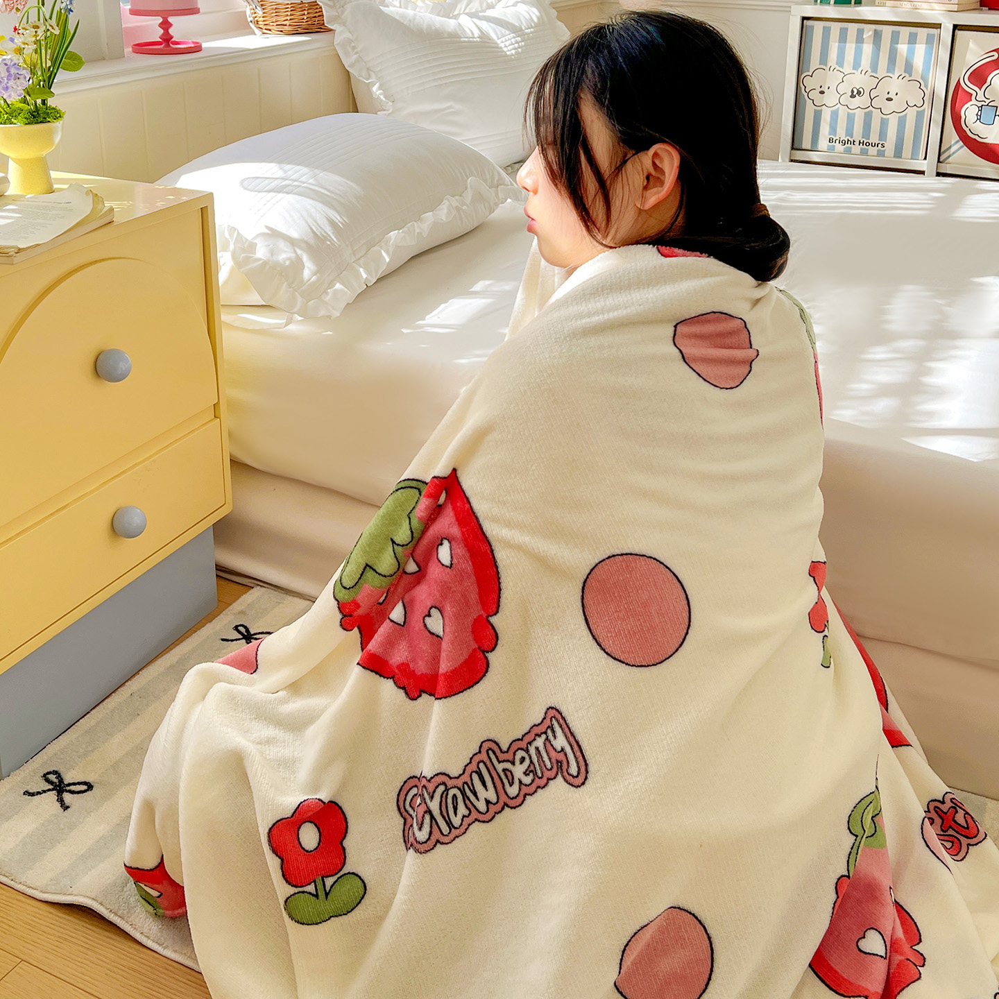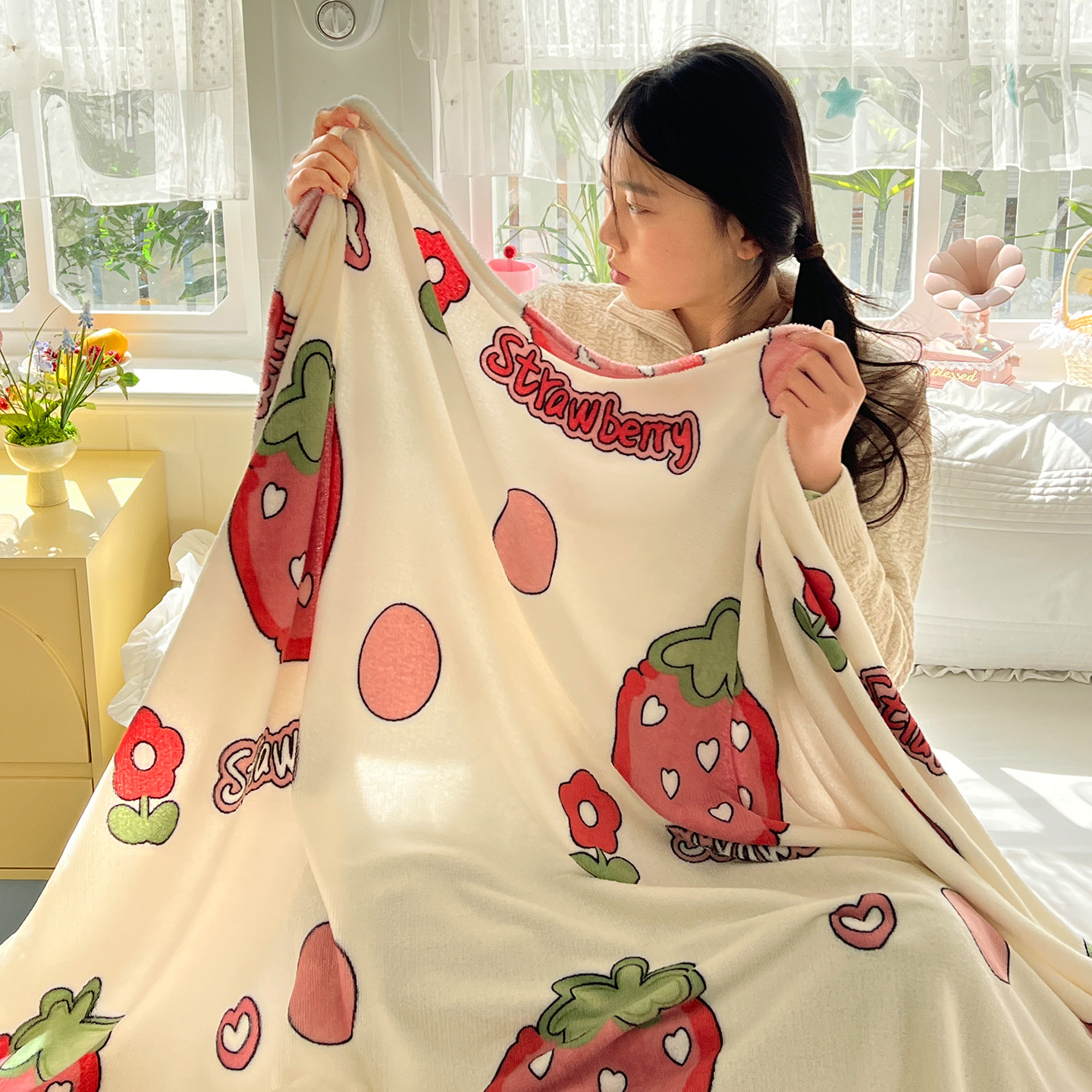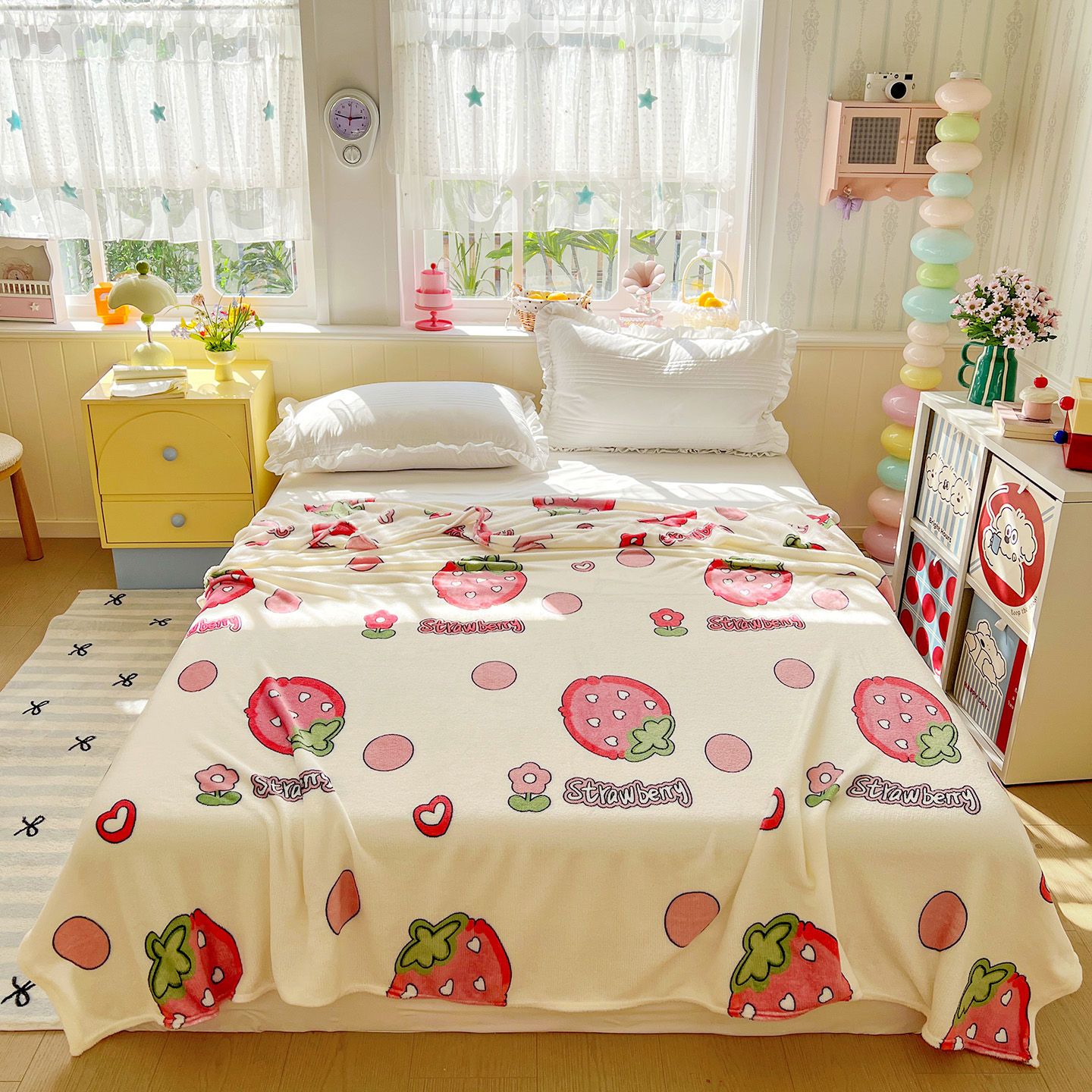 商品名称:悦织湾家纺 2026新款印花法兰绒毛毯牛奶绒盖毯春秋空调毯儿童床单小被子 甜蜜