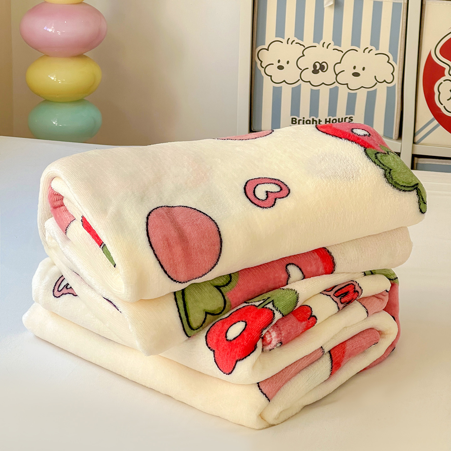 悦织湾家纺 2026新款印花法兰绒毛毯牛奶绒盖毯春秋空调毯儿童床单小被子 甜蜜