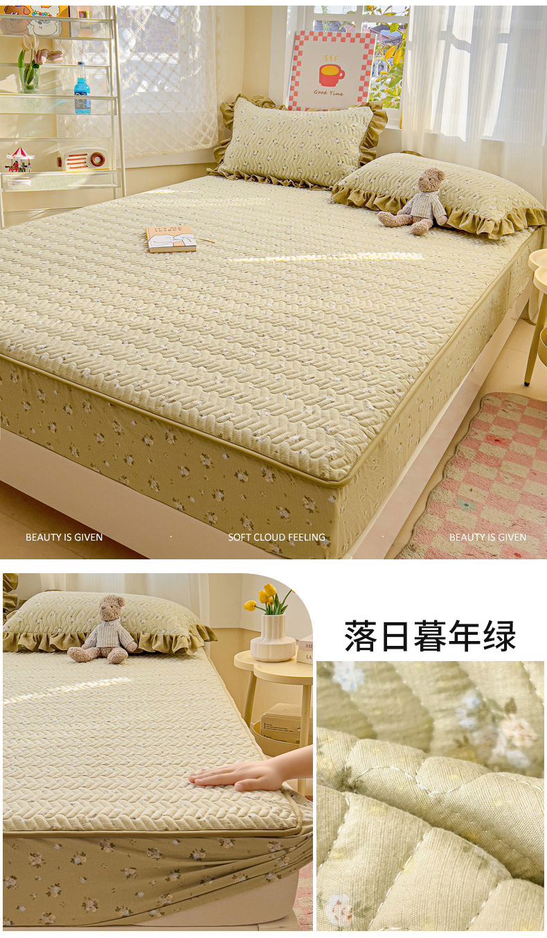 纽缦家纺 2026春夏新款云朵提花双层纱夹棉绗缝单床笠 床笠单件 恋如青柠香