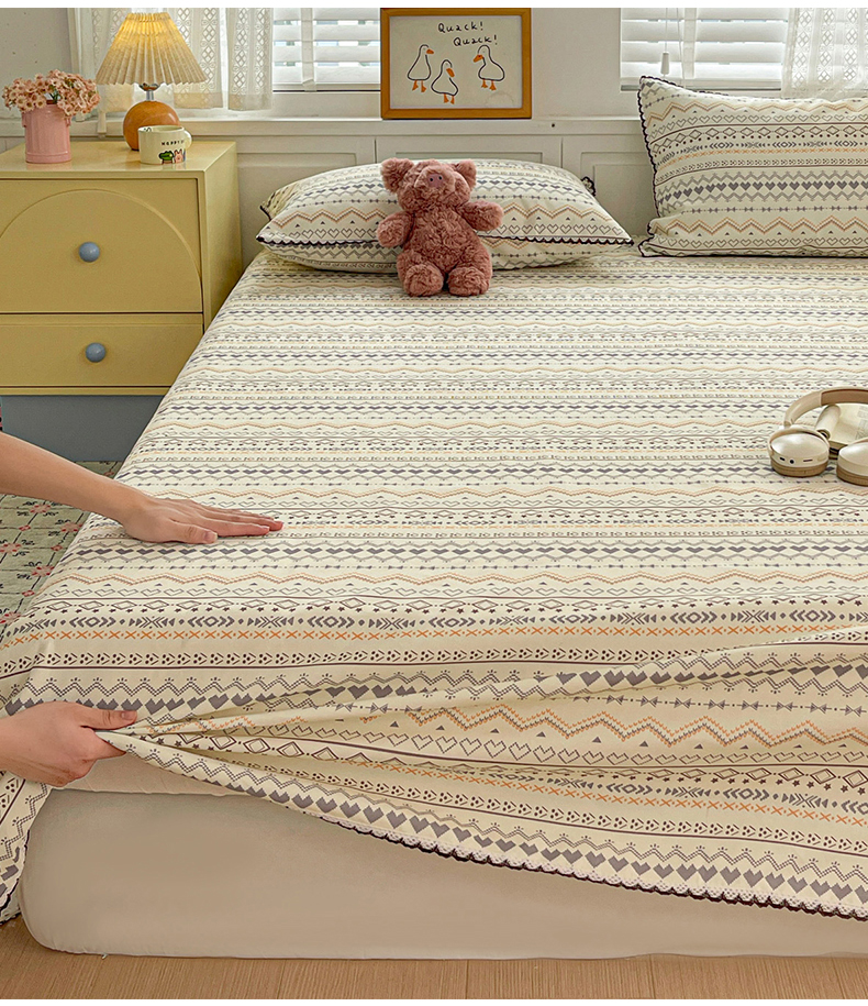 纽缦家纺 2026新款舒适透气细沙卡通印花花边老粗布床单凉席席子 樱桃熊-米