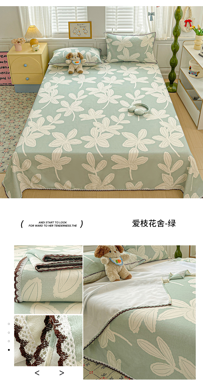 (总)纽缦家纺 2025新款纯色提花学生冰丝床笠,薄荷绿,豆绿,复古蓝,海青,麦穗黄,梦幻紫,奶茶棕,水光蓝,温雅玉,星空灰