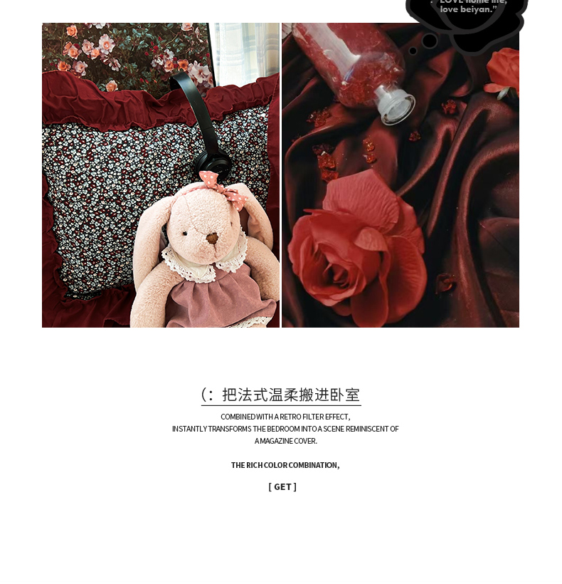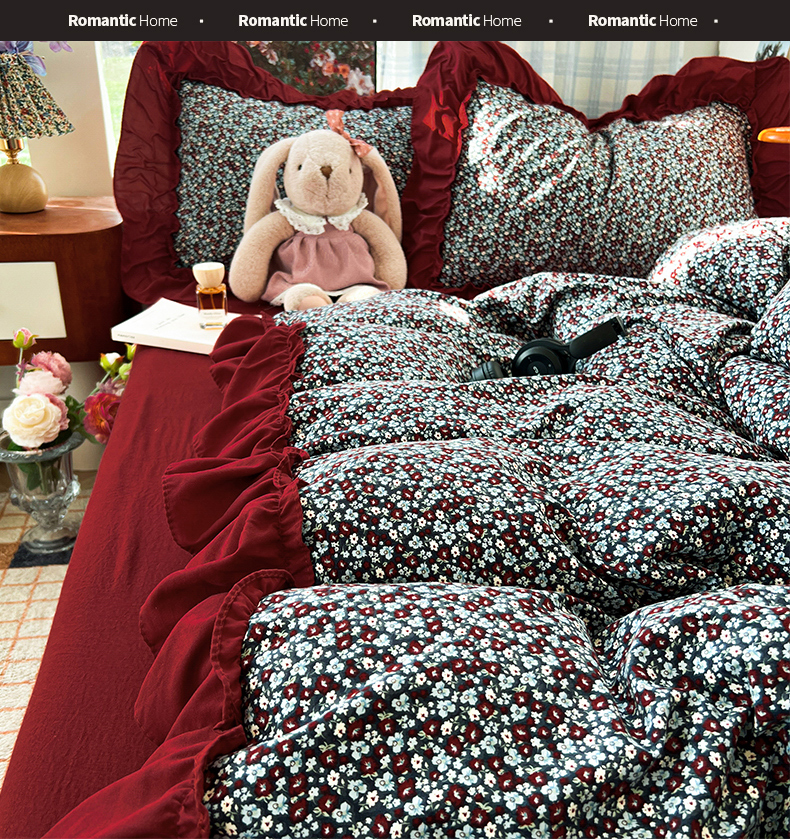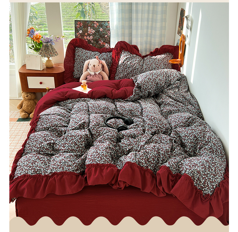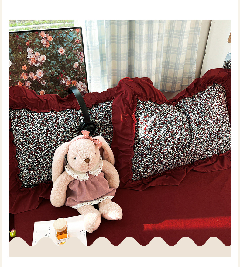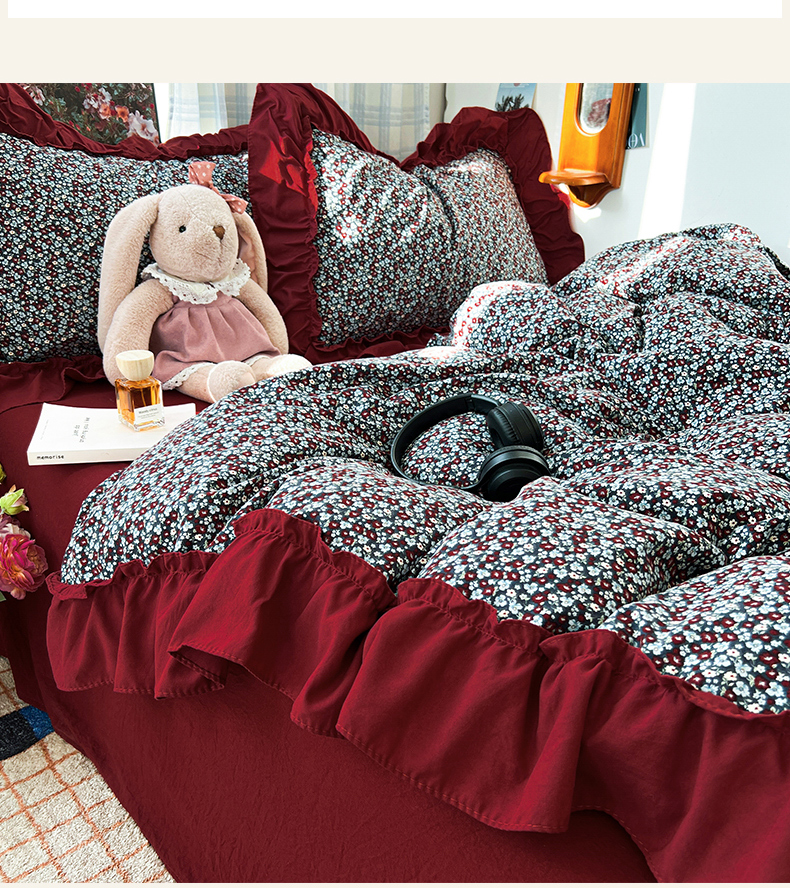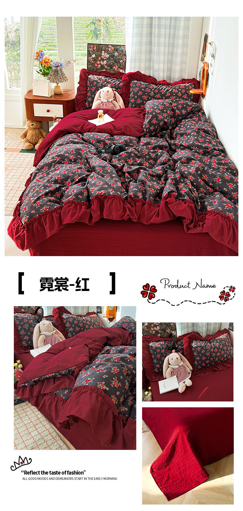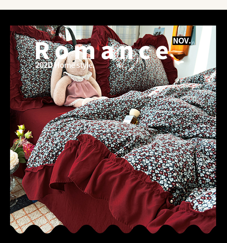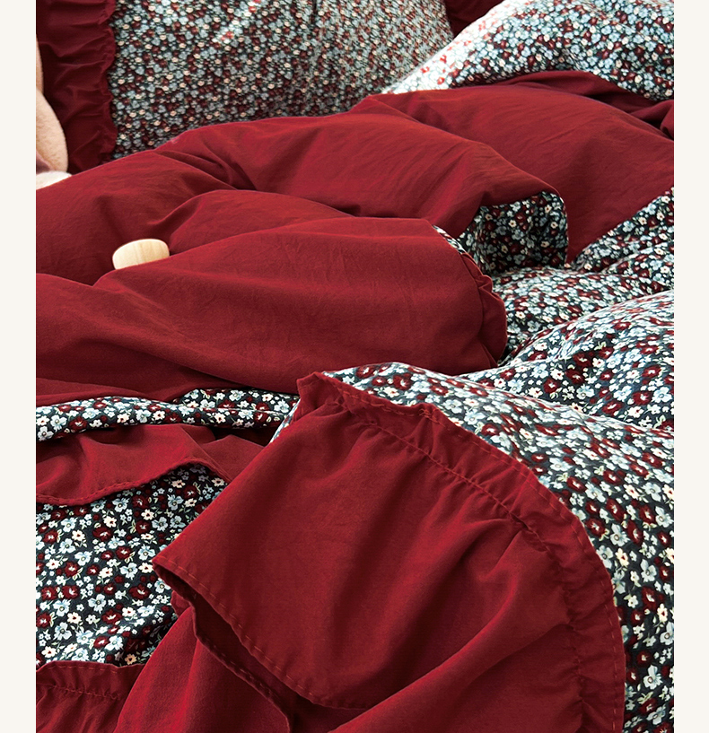 当前位置: 91家纺网 > 商品网购 > 床品套件 > 四件套 > 水洗棉四件套 > 花伞家居 2026新款韩系复古碎花古法水洗棉大花边四件套含买家秀 兰絮语-红