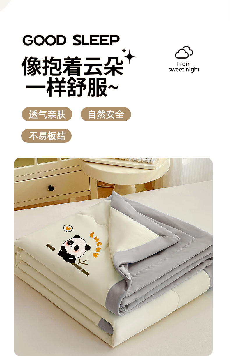 (总)易展家居 2025年新款水洗棉熊猫夏被,熊猫-奶昔白,熊猫-轻绿,熊猫-轻银粉,熊猫-轻银灰