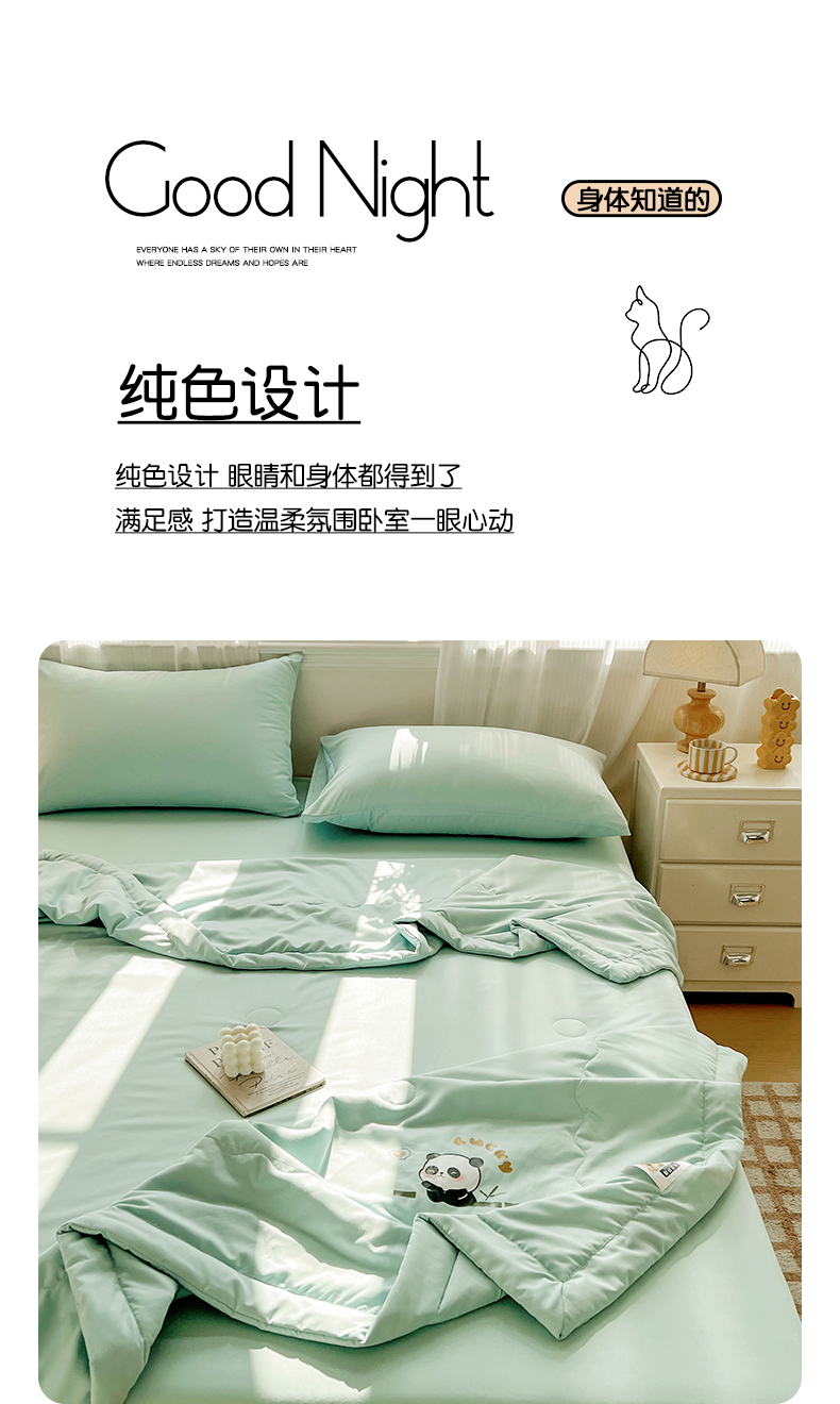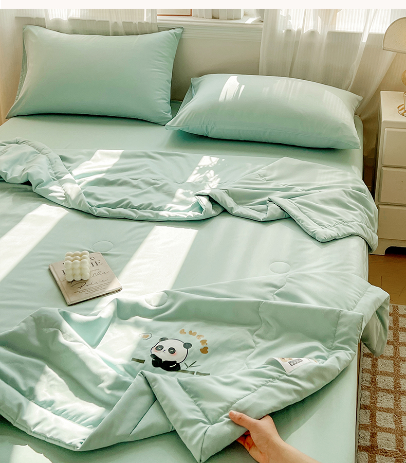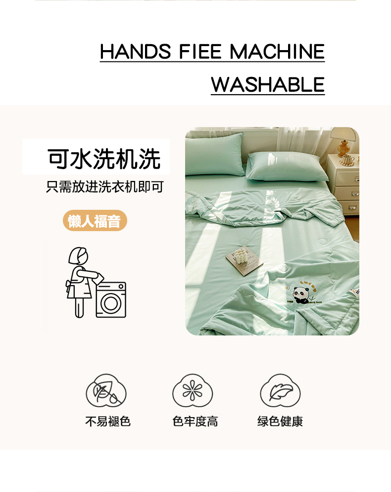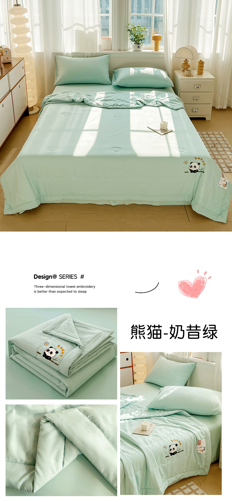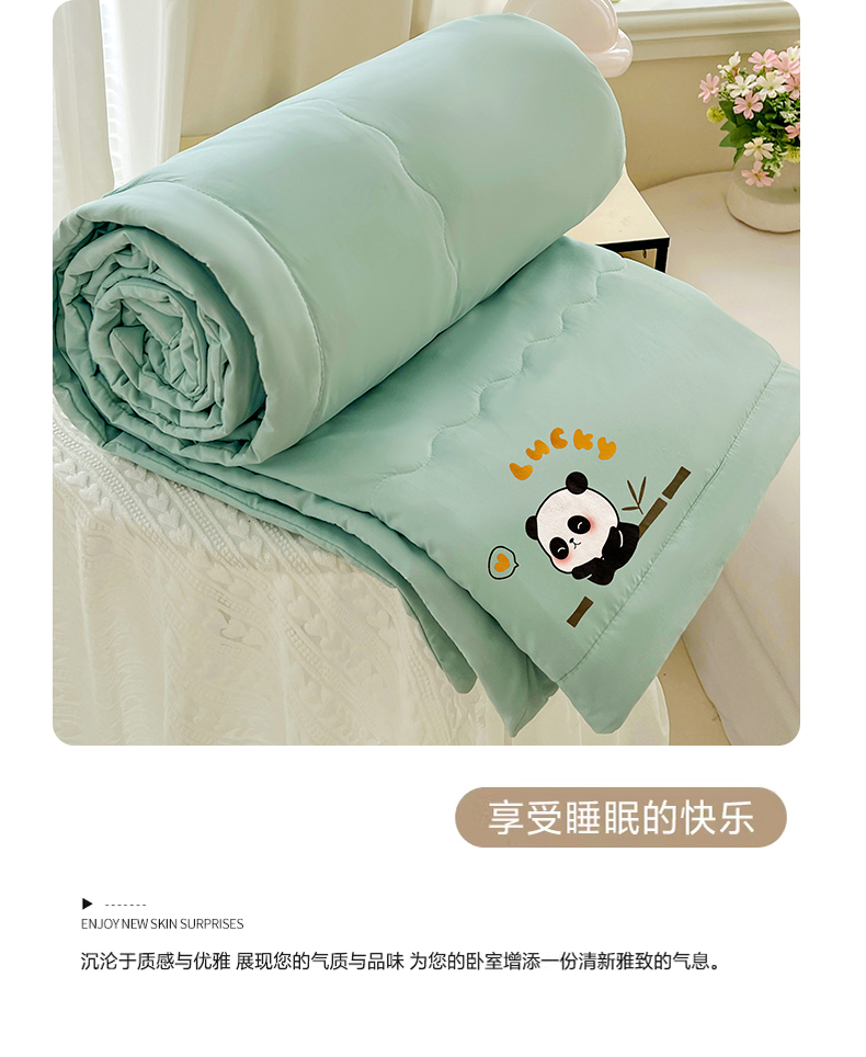 商品名称:易展家居 2026新款水洗棉大豆纤维夏被 熊猫-奶昔绿