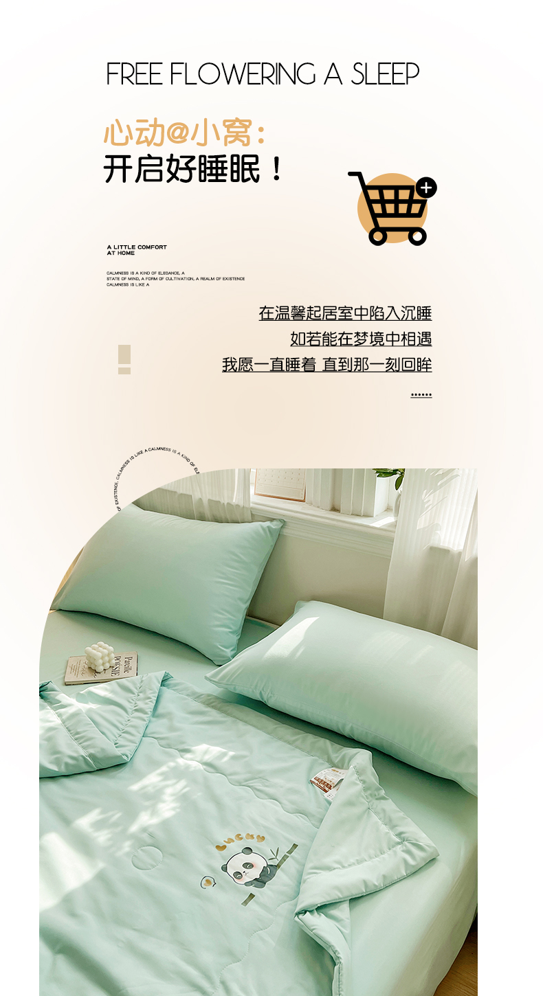 (总)易展家居 2025年新款水洗棉熊猫夏被,熊猫-奶昔白,熊猫-轻绿,熊猫-轻银粉,熊猫-轻银灰
